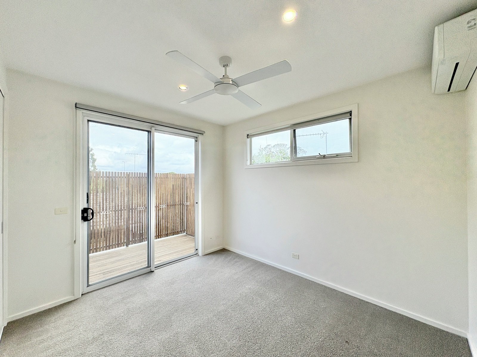 - Two additional bedrooms, both with ceiling fans, split system heating and cooling and built-in robes