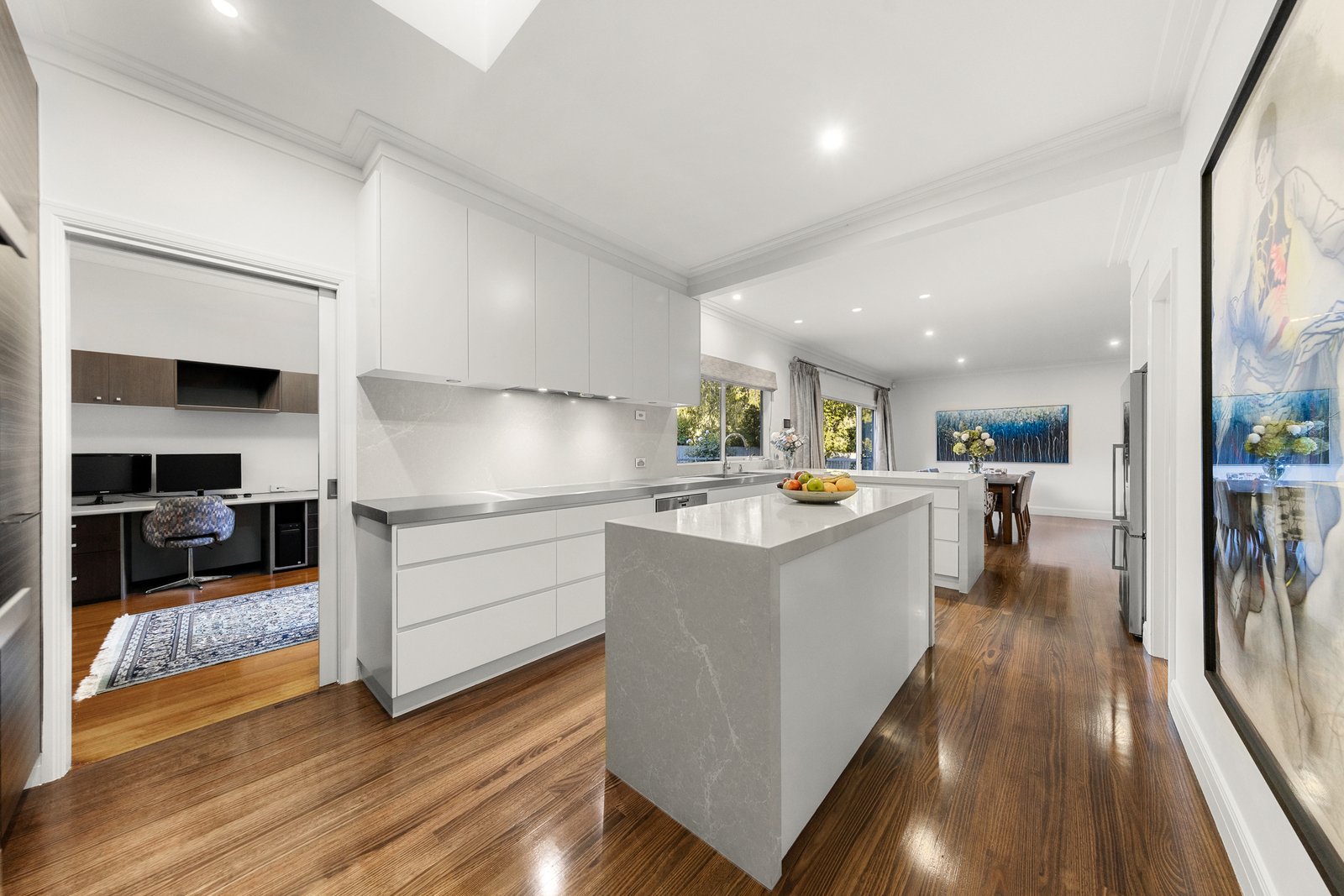 Set behind a manicured garden and a timeless weatherboard façade, 61 Durham Road, Surrey Hills delivers the ideal blend of period charm, everyday comfort and modern practicality in one of the area’s most tightly held streets. From the moment you arrive, the home’s warmth is obvious—high ceilings, polished timber floors and a light, airy feel that flows right through the heart of the residence, creating a place that instantly feels easy to live in.