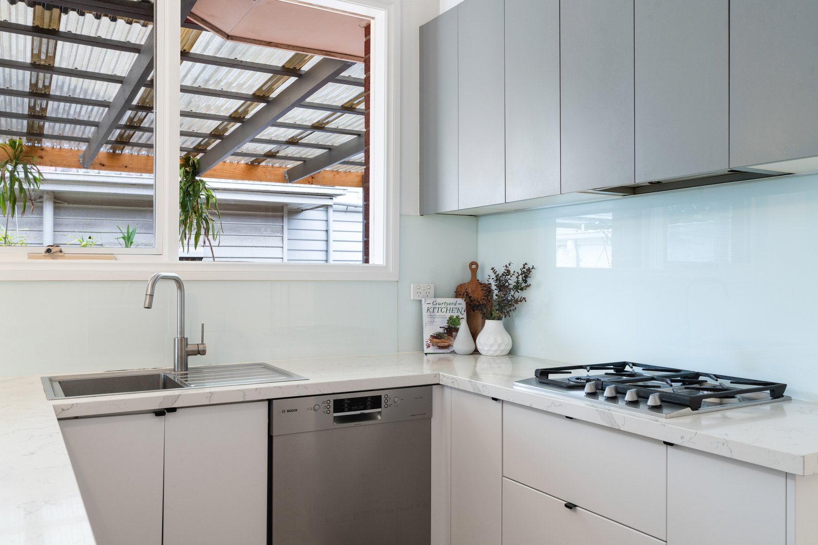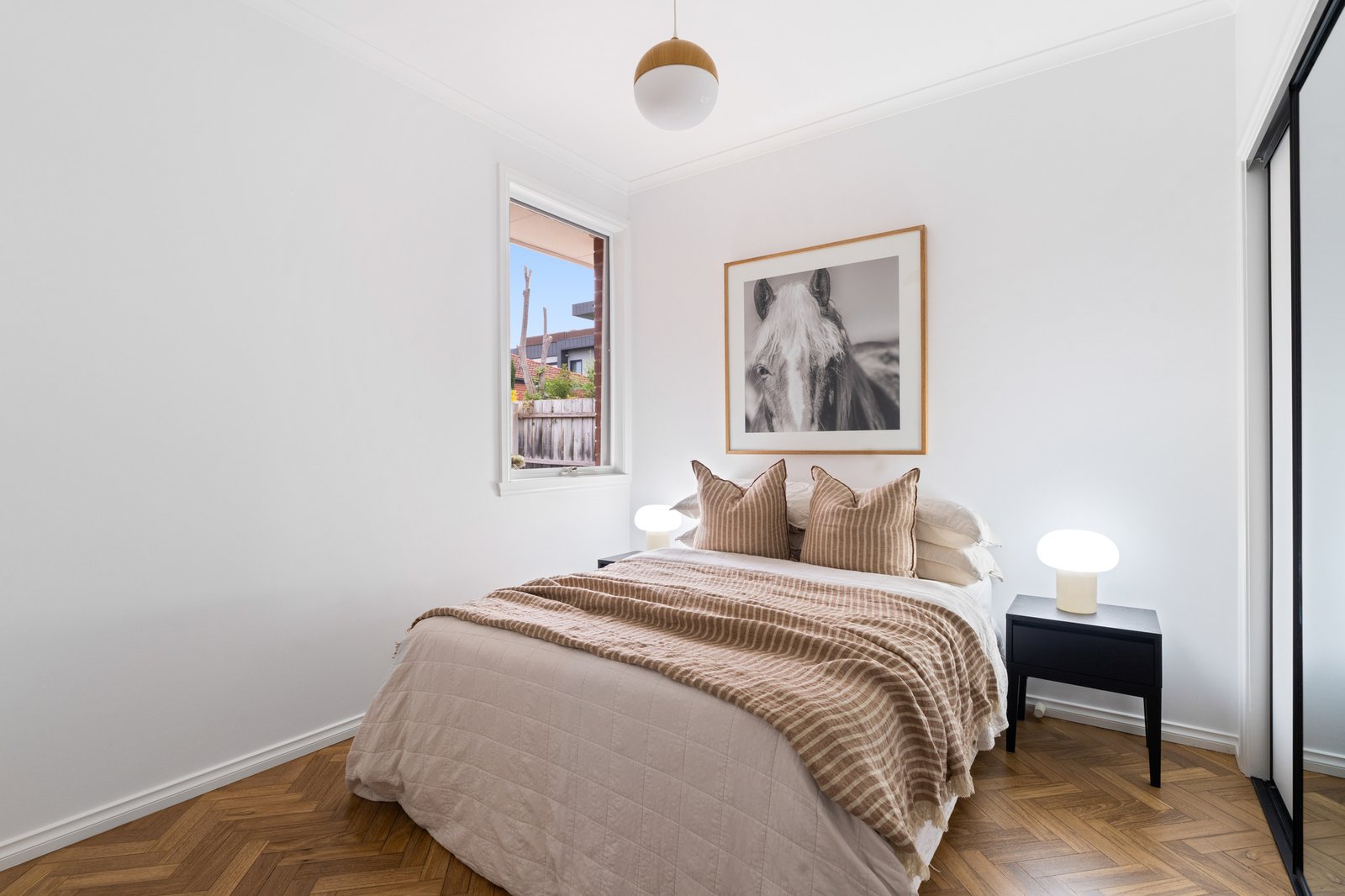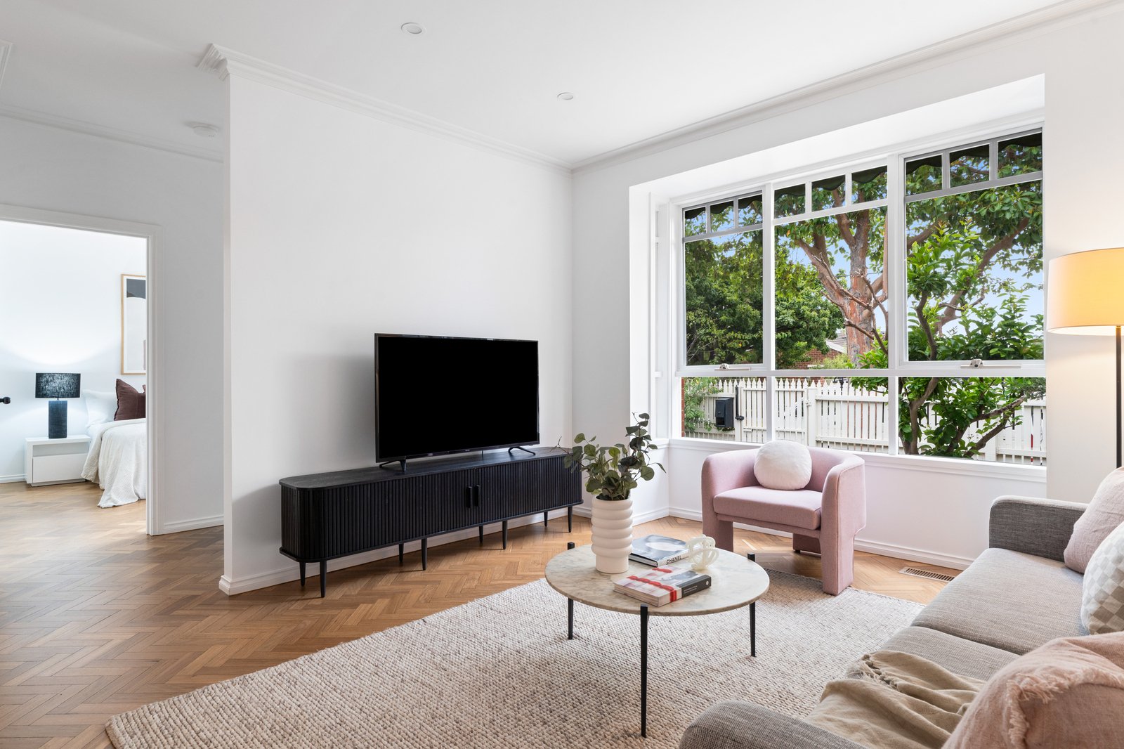 Styled for today with a sleek stone and prestige appliance kitchen (with Bosch dishwasher) and a new designer laundry with the same sleek finishes, the home is appointed with contemporary comforts including tall mirrored robes, ducted heating and cooling and additional reverse-cycle air-conditioning. Timeless by design with authentic herringbone parquetry and classic marbleised stone benchtops, this inspired home features beautiful architectural detail including classic cabinetry and high-corniced ceilings centred on period ceiling-roses.