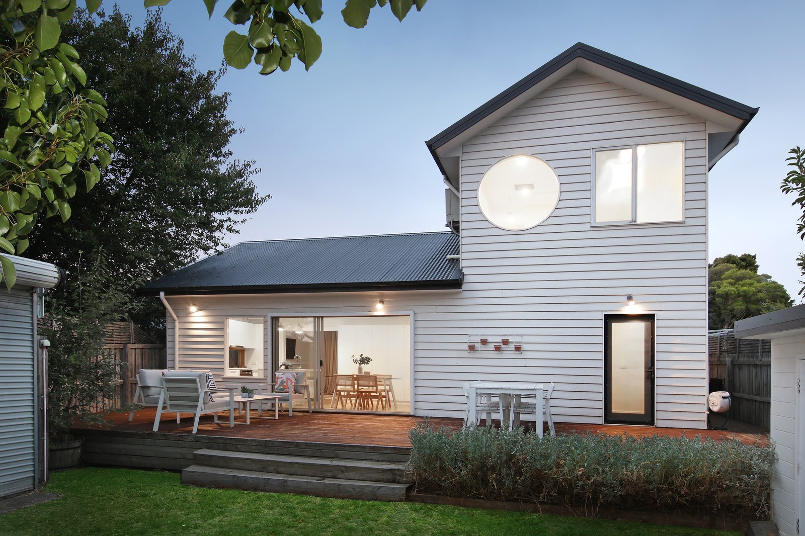 Designer-styled with warm timber floors, cool stone benchtops in bathroom, textural loop-pile carpet and airy roof-hung sheer curtains, this brilliant streetfront home lights up at every turn; with vast circular feature-windows shining across the levels, and a due -north rear aspect adding all-day sun to the lawned rear yard. High on practicality too, this reverse-cycle air-conditioned and fan-cooled home has a roaring open-fire for the lounge, and built-in robes supplemented by roof-storage on two levels.