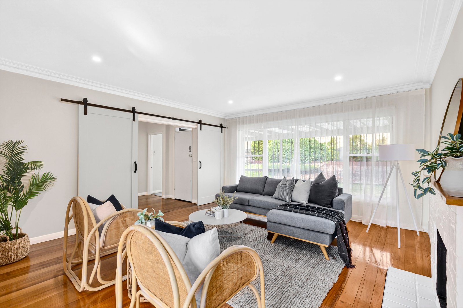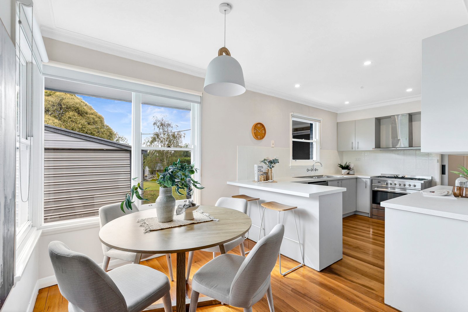 Set behind a picket fence and established gardens, the classic double-fronted façade is presented in a bold modern colour palette. From the entry, stunning barn doors open to an inviting lounge featuring an original mantel and fireplace, polished timber floors, ornate cornice, light neutral interiors, and split system heating and cooling for year-round comfort. The adjoining dining area features ambient pendant lighting, connecting with the contemporary kitchen for easy everyday living and effortless entertaining.