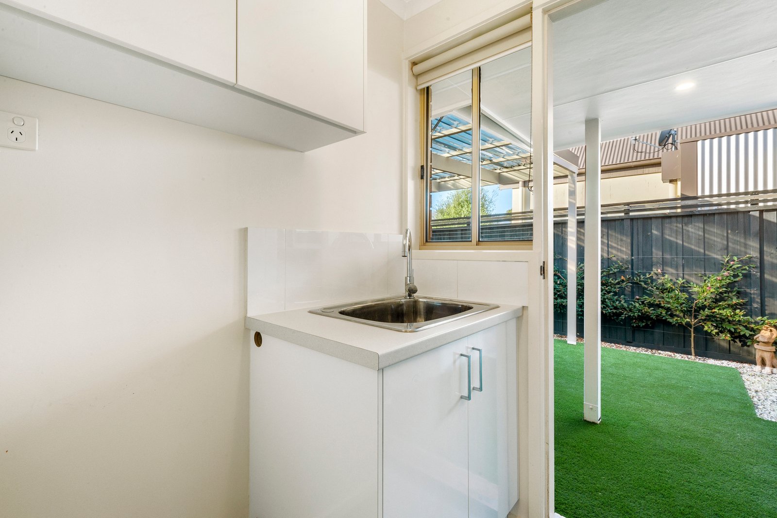 Two spacious bedrooms, each fitted with built-in robes, offer comfortable accommodation and are serviced by a beautifully updated bathroom with a neutral colour scheme and recessed shower niche. A separate toilet and functional laundry with overhead storage and external access add further practicality.