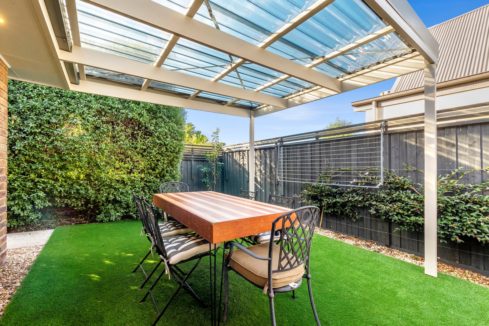 Outside, high fencing and established hedging ensure privacy, while the covered alfresco area creates a perfect setting for entertaining in any season. Additional highlights include split-system heating and cooling, security shutters and a single lock-up garage.