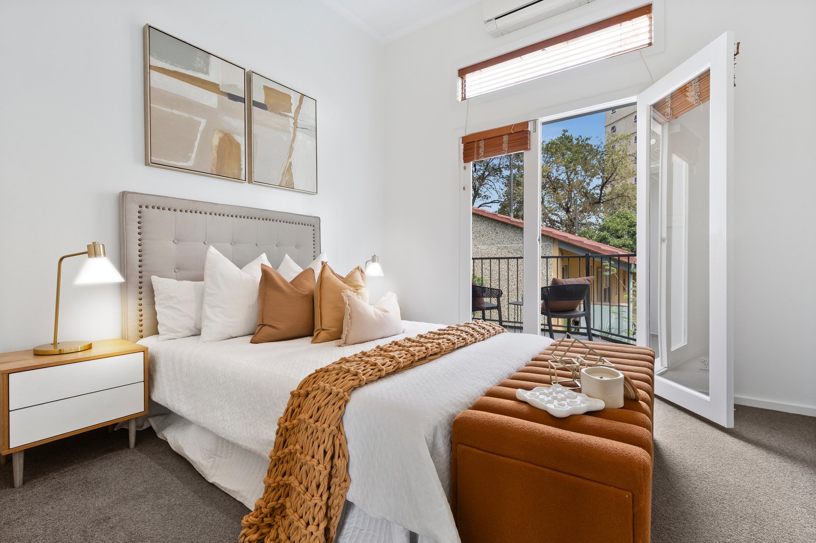 Above, two bedrooms with BIRs, the main with private balcony, are served by an immaculate central bathroom and hallway closet, completing a comfortable inner city home with ample storage throughout, enhanced by ducted heating and split system cooling. Enjoy walk-everywhere convenience with supermarkets, shops, cafes, restaurants and bars, three tram lines, trains, Alma Park and more - all within a short stroll.