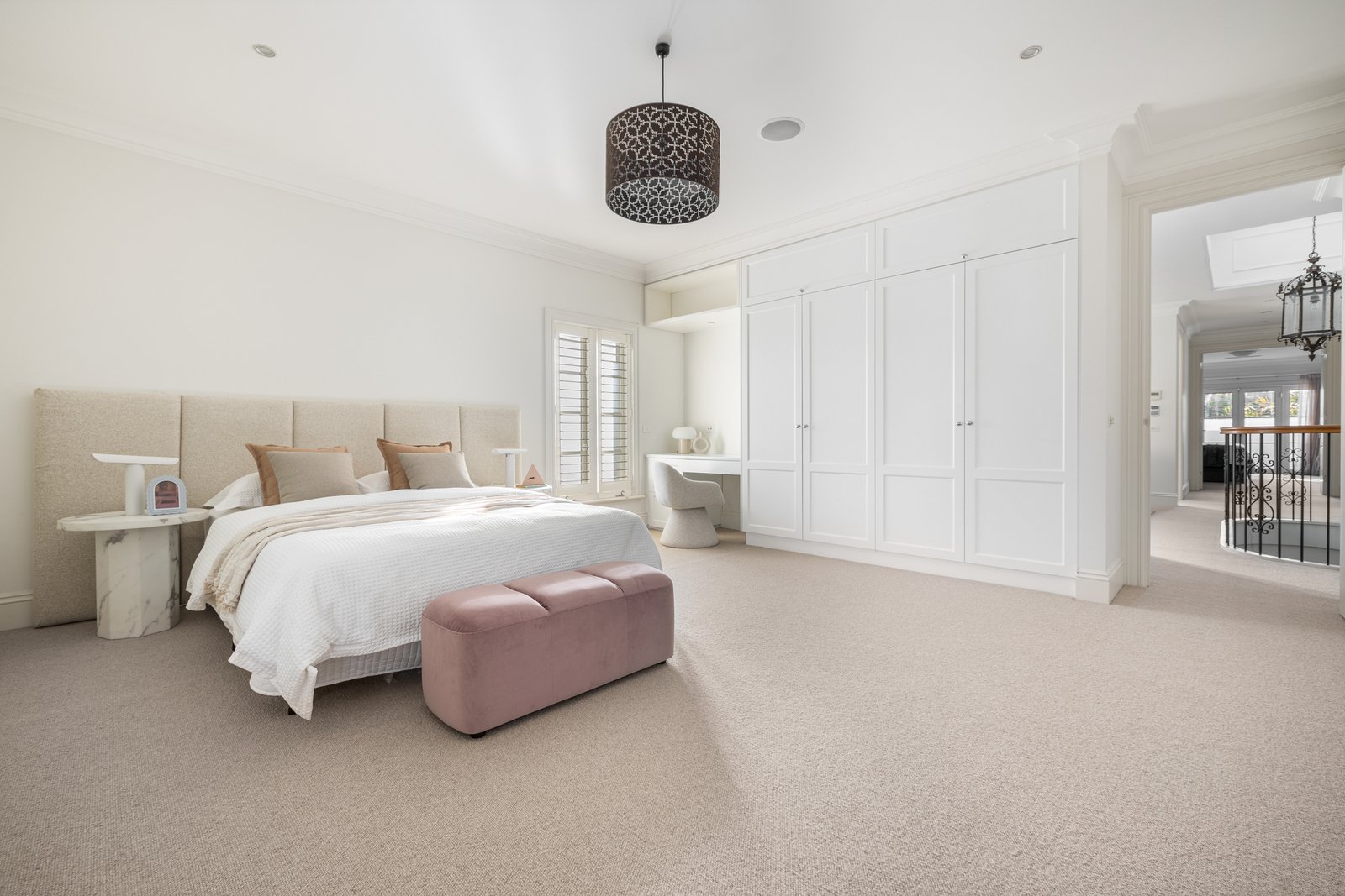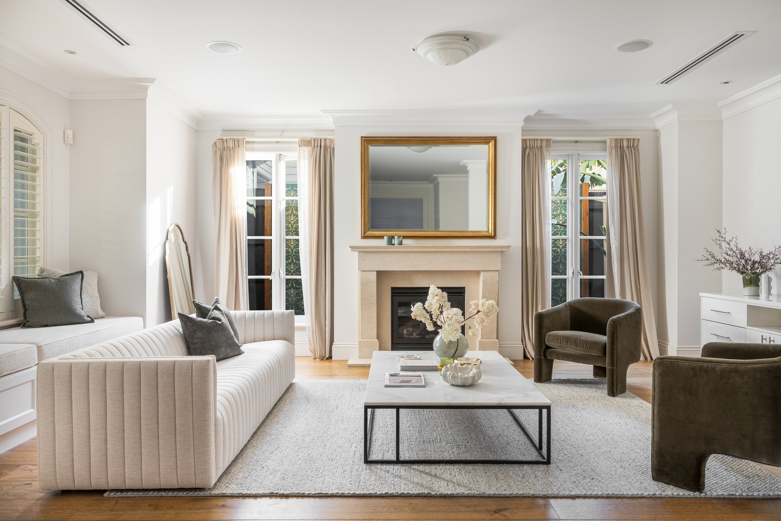Upgraded with the latest loop carpets, privacy-enhancing plantation shutters, and warming fireplaces for each ground-floor living zone, the home is climate-controlled across multiple zones, network-cabled to every room, and secured by a high-end alarm system including app-operated 13-camera CCTV. Securely auto-gated in irrigated Paul Bangay-inspired gardens, the home shines with a dual-heated (gas and solar) pool behind invisible glass fencing. The immense accommodation even continues to the vast basement garage, with potential to secure six cars or comfortably fit five alongside gym and cellar areas.