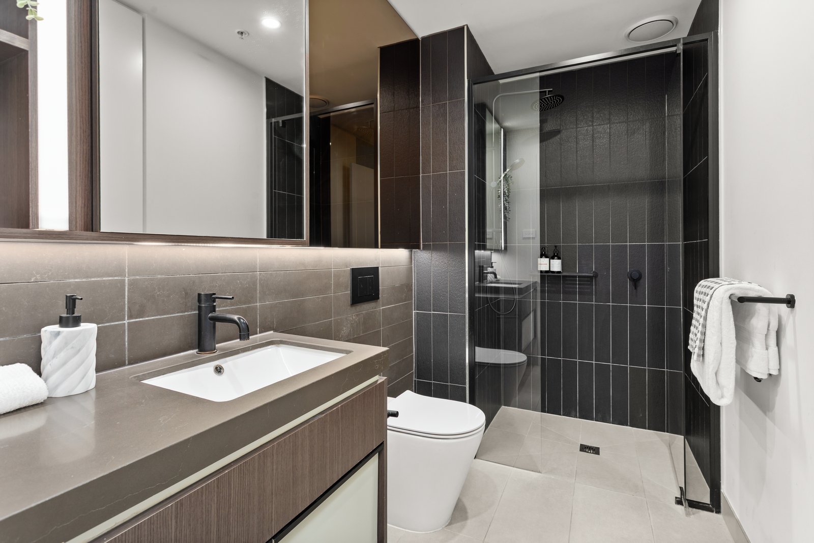 • Modern main bathroom with contemporary finishes and integrated laundry facilities