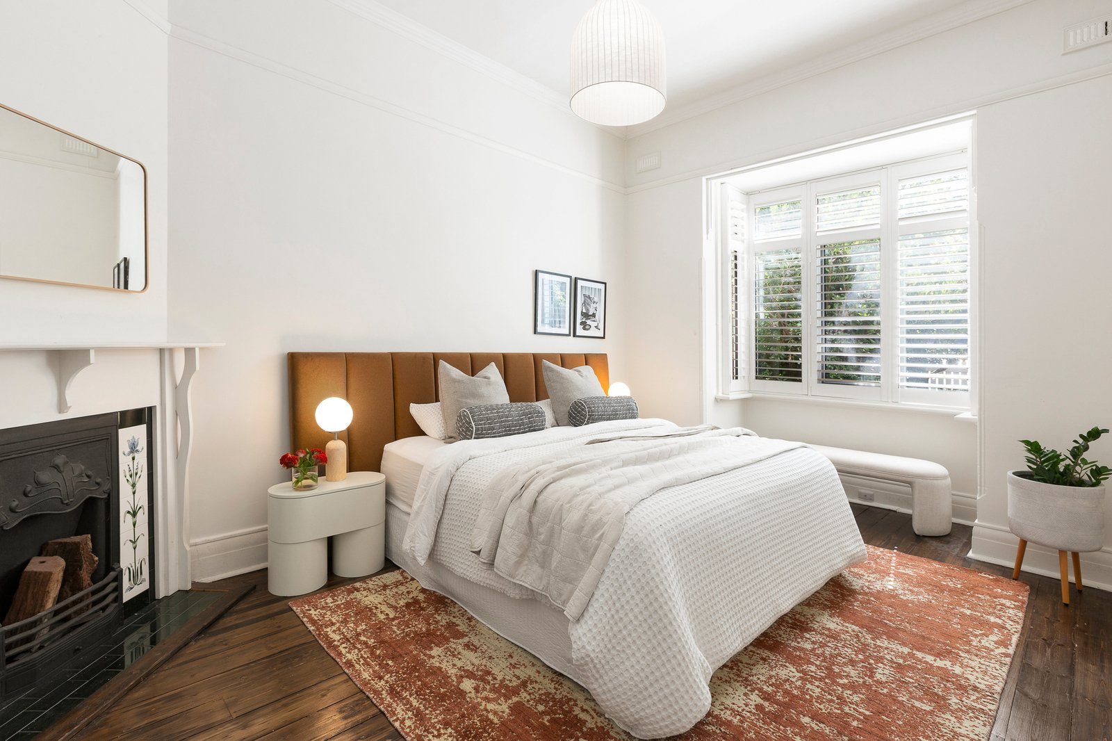 At the front of the home, a generous third bedroom or second living room is enriched by an elegant bay window and tiled gas open fireplace. The main bedroom is appointed with twin built-in robes and a luxe stone ensuite, while the family bathroom boasts a designer freestanding bath. Additional features include a European laundry, timber floors, plantation shutters and in-ceiling speakers.