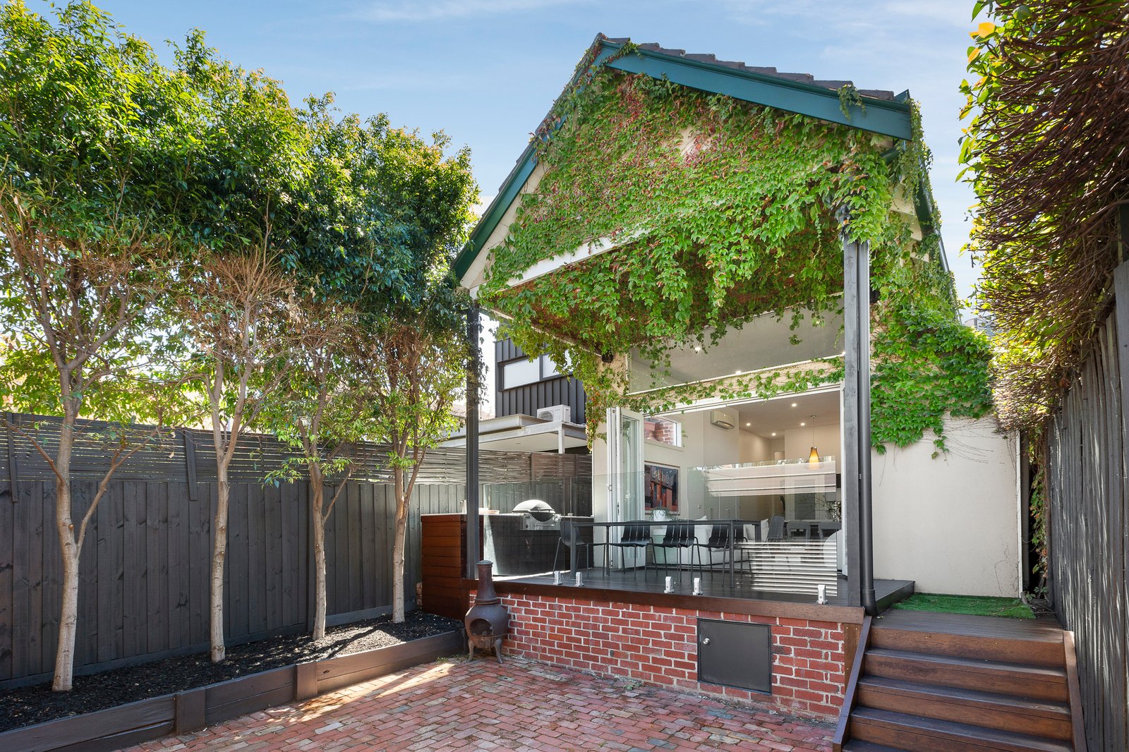 Beautifully balancing period elegance with modern design, the home unfolds to reveal a versatile three-bedroom, two-bathroom layout, culminating in a breathtaking indoor-outdoor living domain. A sky-high clerestory roofline floods the space with natural light, while tall bi-fold doors connect seamlessly to a vine-covered al fresco terrace with a fully integrated Weber Q, floating above an utterly private, north-westerly courtyard with rear access.