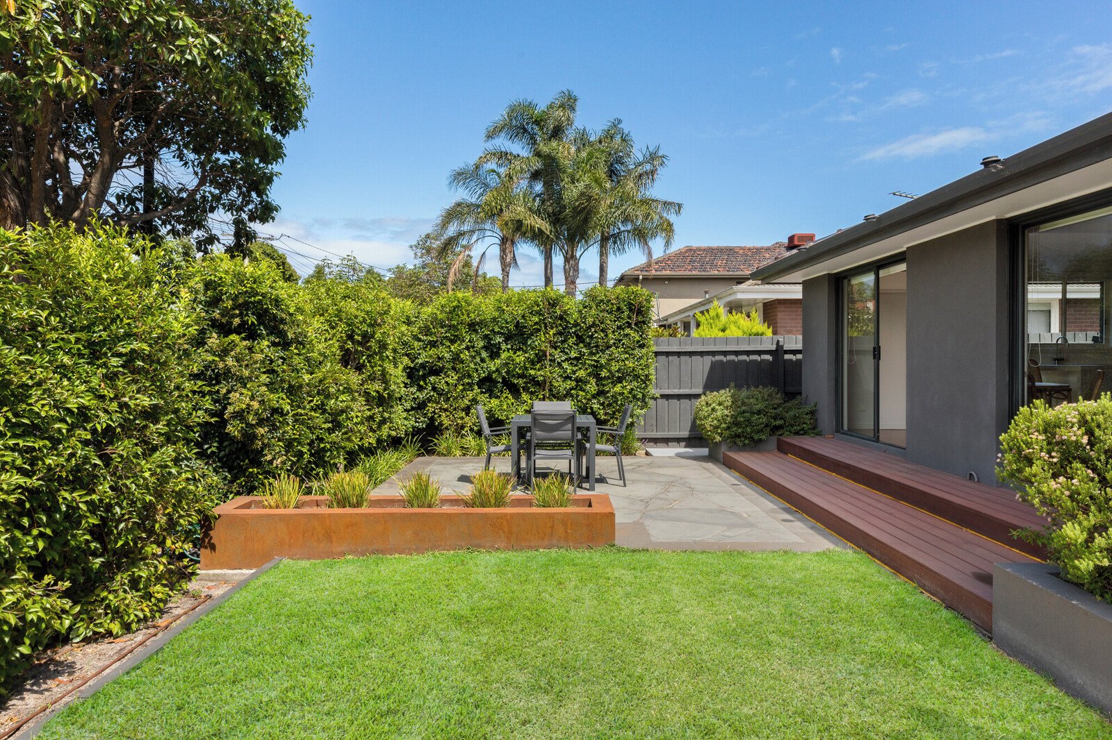 Stand-alone and street-fronted on its own title, this one of a pair has been rendered and landscaped to create a high-end haven to savour. Secure fencing wraps a leafy, sun-splashed front yard and features a gorgeous bluestone paved, al fresco entertaining area.