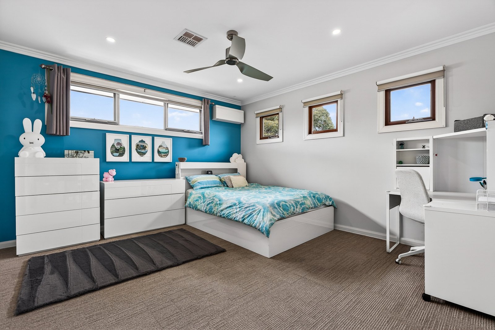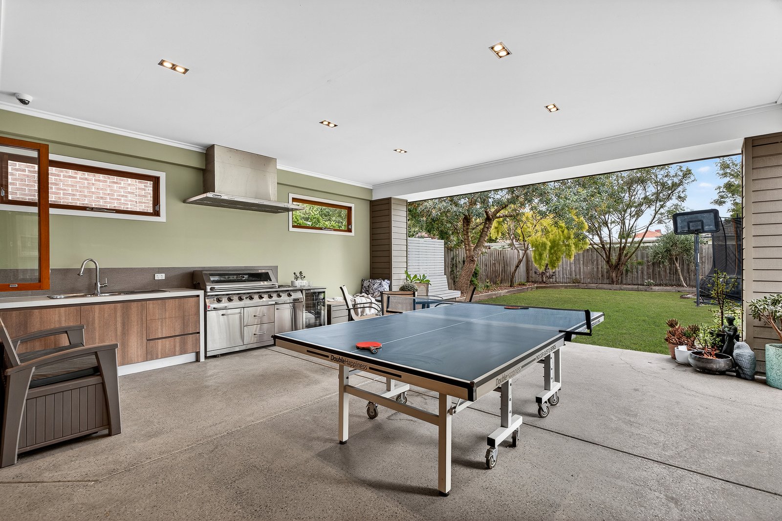 A highly sought-after ground-floor master suite anchors the flexible floorplan, while expansive north-facing living and dining zones wrap seamlessly around a covered, all-season alfresco — creating effortless indoor-outdoor entertaining. At the heart of the home, a stone-appointed kitchen showcases European appliances, extensive cabinetry and quality finishes, complemented by designer bathrooms and an extra-large, fully fitted laundry.
