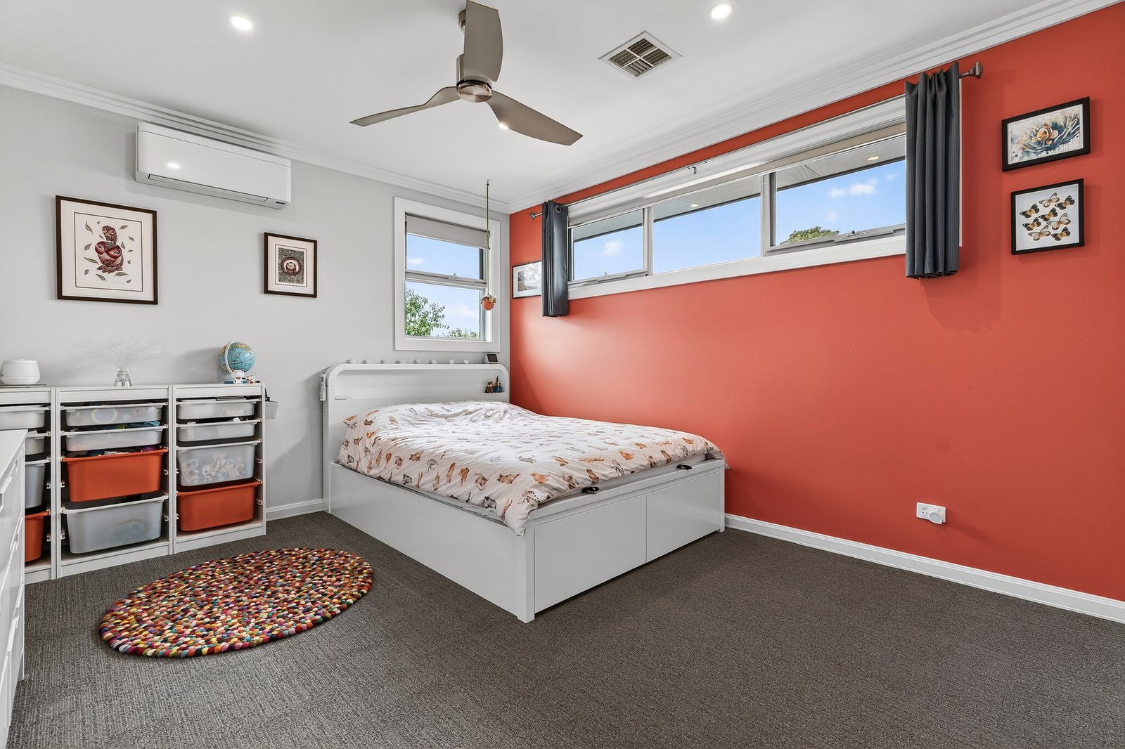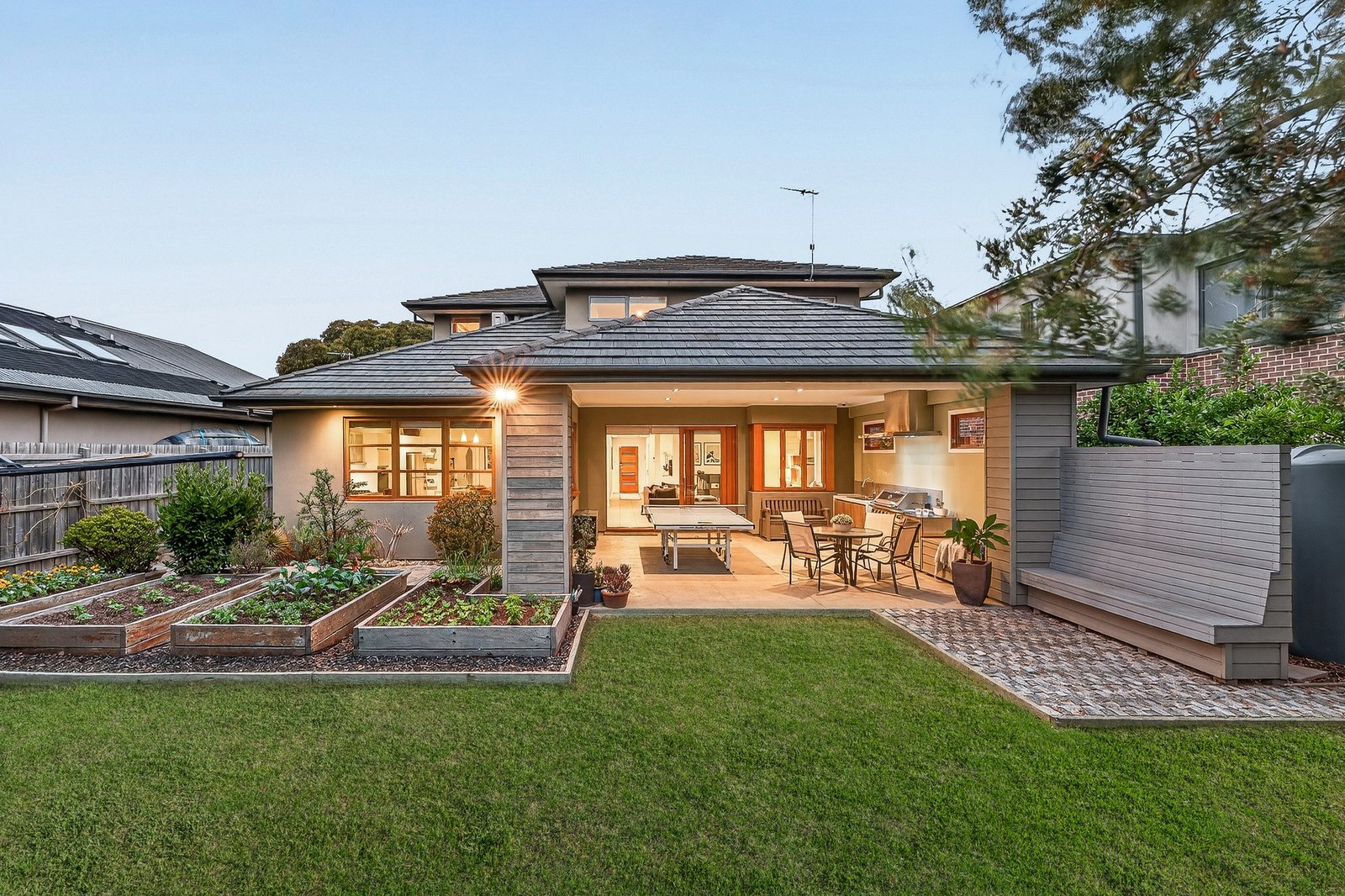 Outdoors, cottage-style landscaping frames a north-facing backyard that’s a true kids’ paradise. A double automatic garage plus two additional off-street car spaces add further practicality.