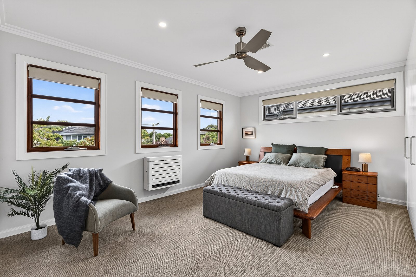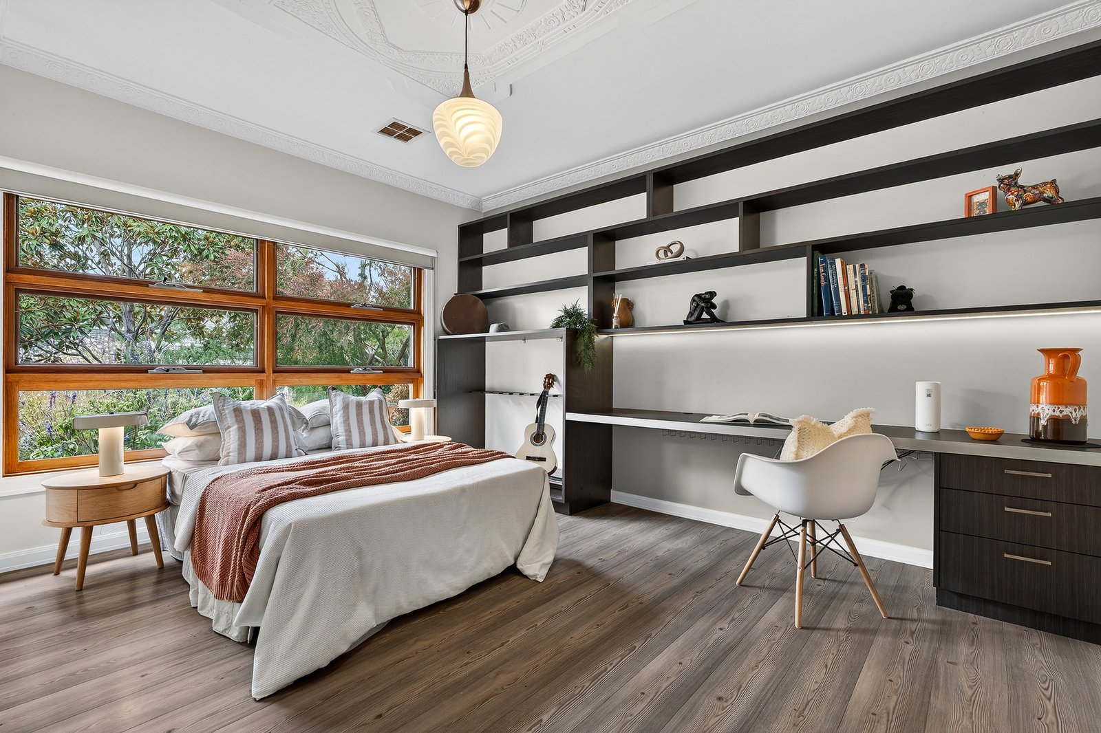 Architectural timber joinery and custom cabinetry add warmth and refinement throughout, while climate control and security alarm ensure year-round comfort and peace of mind.