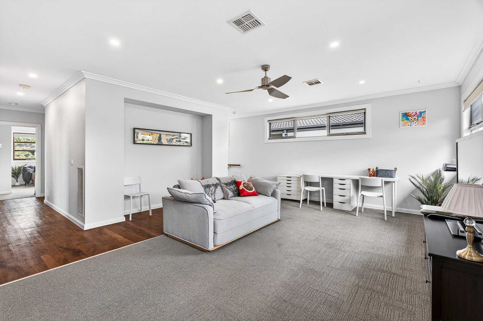 Upstairs, a generous second lounge provides the perfect retreat for families, alongside oversized bedrooms with abundant storage.
