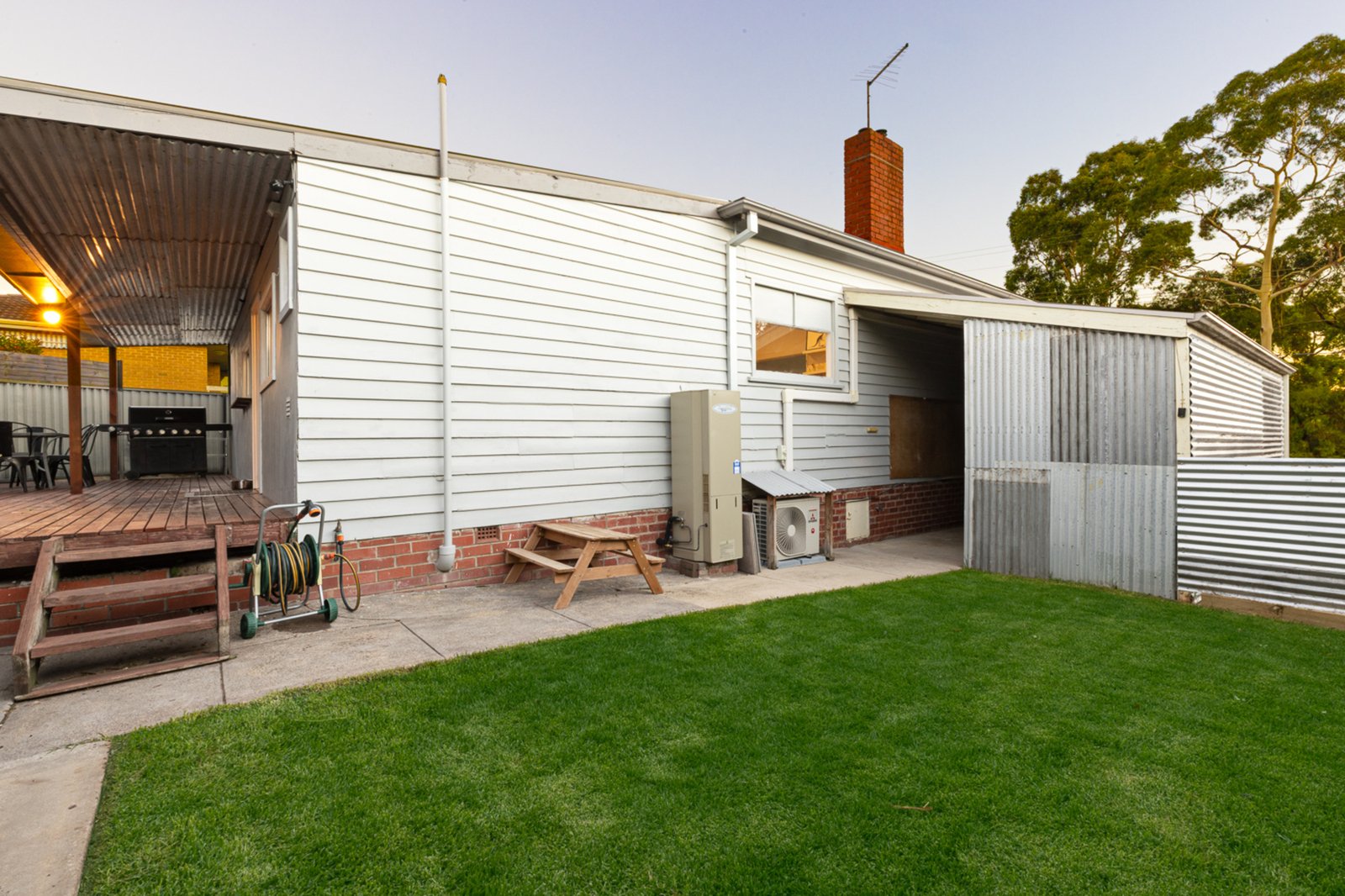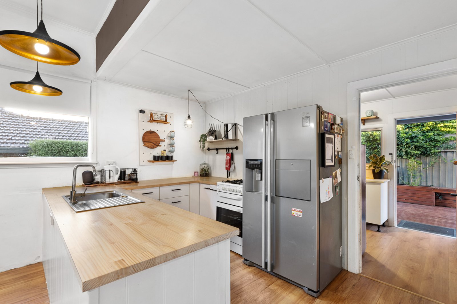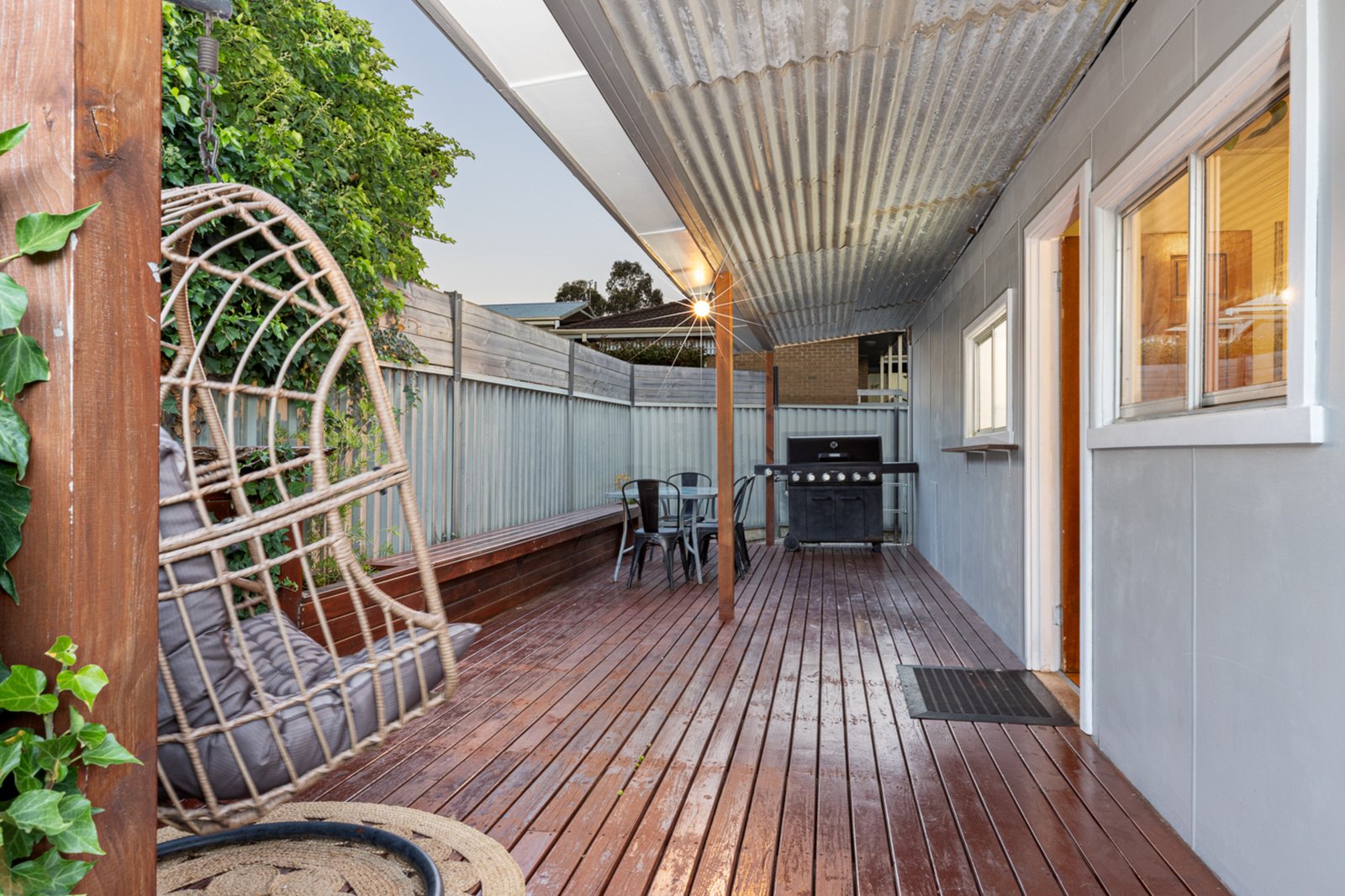 Inside, the home features three well-proportioned bedrooms, with the master showcasing a stunning ceiling rose, built-in robes and a built-in desk. A fully renovated bathroom offers a large bath, separate shower and stylish floating vanity. The updated kitchen flows seamlessly into the open-plan dining area, while a generous formal living room with ceiling rose and split system provides year-round comfort. Outdoors, you’ll love the undercover decked alfresco with built-in bench seat, a secure garden area ideal for kids and pets, plus a single carport with roller door and an additional open car space perfect for caravans or trailers.