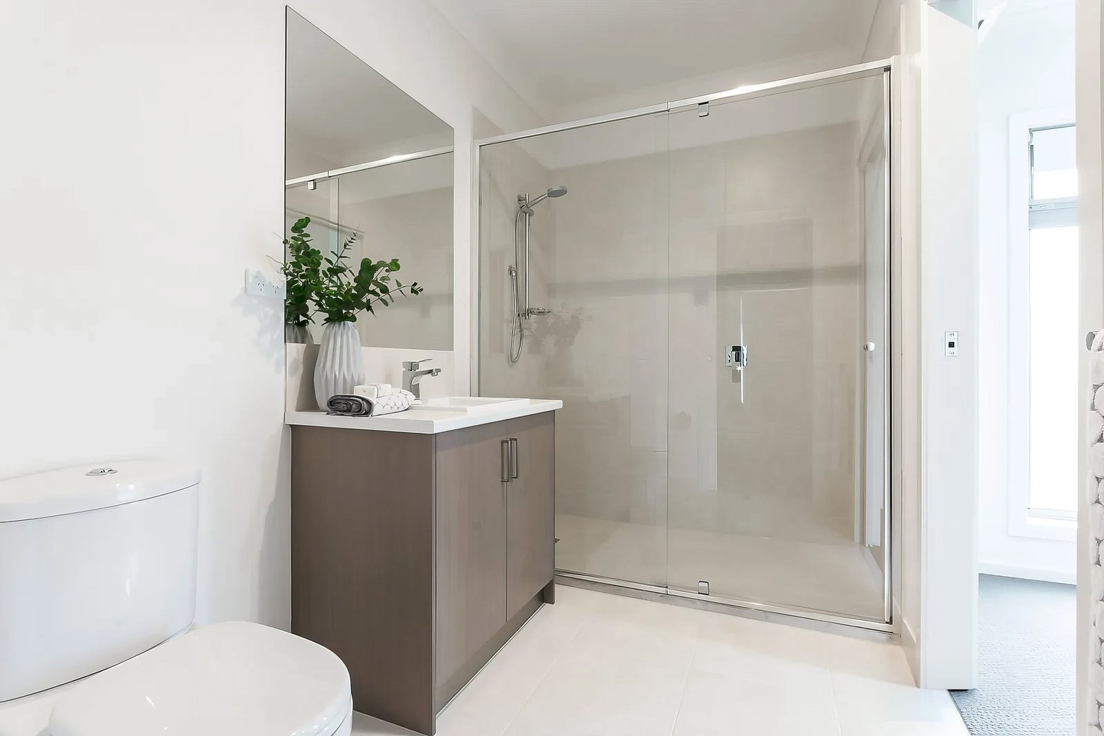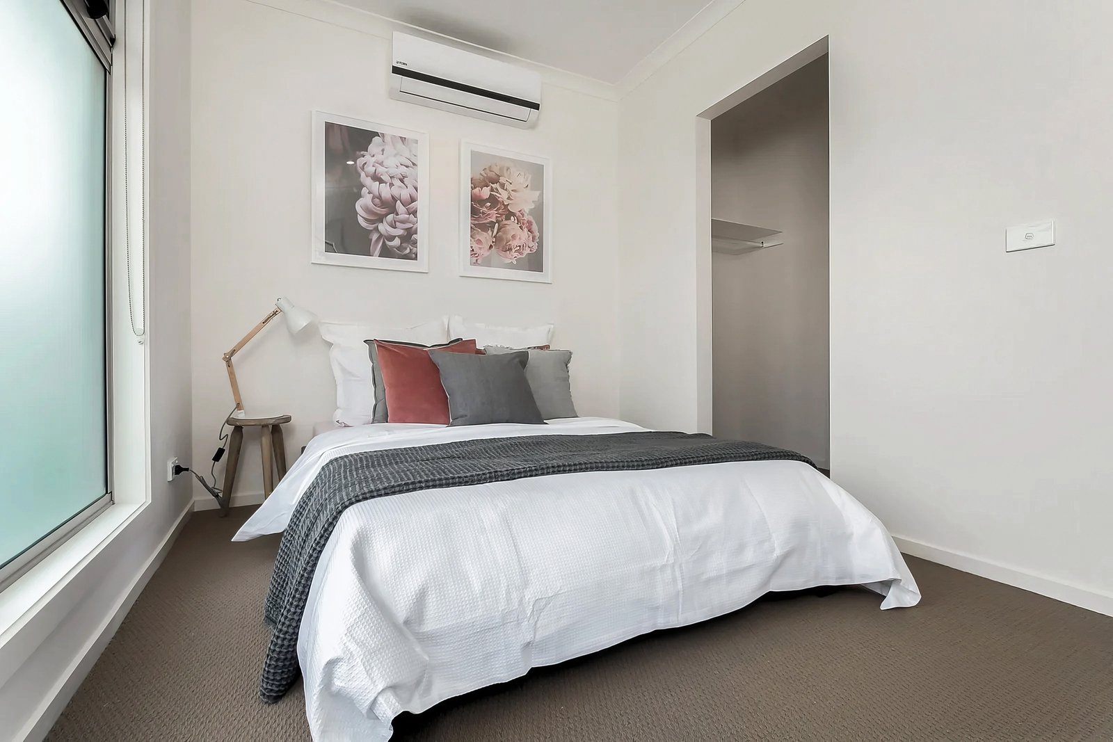 Upstairs, the main bedroom features walk-though robes, bedroom two includes built-in robes, both enjoying direct access to the two-way bathroom with a spacious shower and modern vanity. Individual split systems in the bedrooms allow for personalised climate control.