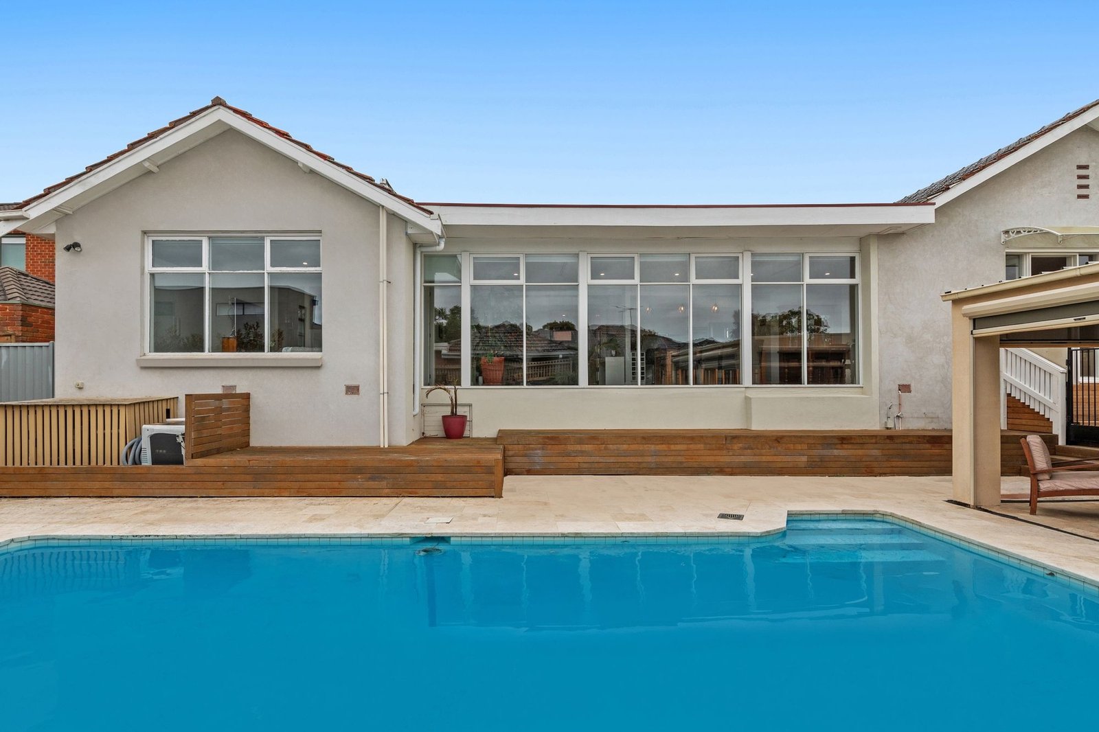 With convenient service lane access, this beautifully renovated residence is a stunning showcase of contemporary style, abundant space and resort-inspired entertaining. Completely transformed to reflect modern sophistication, the home’s light-filled interiors reveal a spacious open-plan living and dining domain, enhanced by timber floors and a designer kitchen flaunting stone surfaces, island bench, Butler’s pantry and Bosch appliances including induction cooktop. Impressive accommodation is displayed by 4 bedrooms, (3 with sleek fully-tiled ensuites and walk-in robes), sunroom/5th bedroom and a stylish main bathroom. Outdoors, the home truly comes to life. A spectacular resort-style heated pool and weatherproof alfresco with retractable fly screens form the ideal setting for family enjoyment and entertaining. Finished with every modern indulgence including reverse-cycle heating/AC, large laundry, alarm, electric blinds and auto entry gate to a double garage and an abundance of off street parking. Surrounded by a wealth of amenities, this entertainer’s haven is just minutes to schools, bus services, Monash University, train station, Oakleigh’s vibrant culinary and shopping precinct and M1 Freeway.