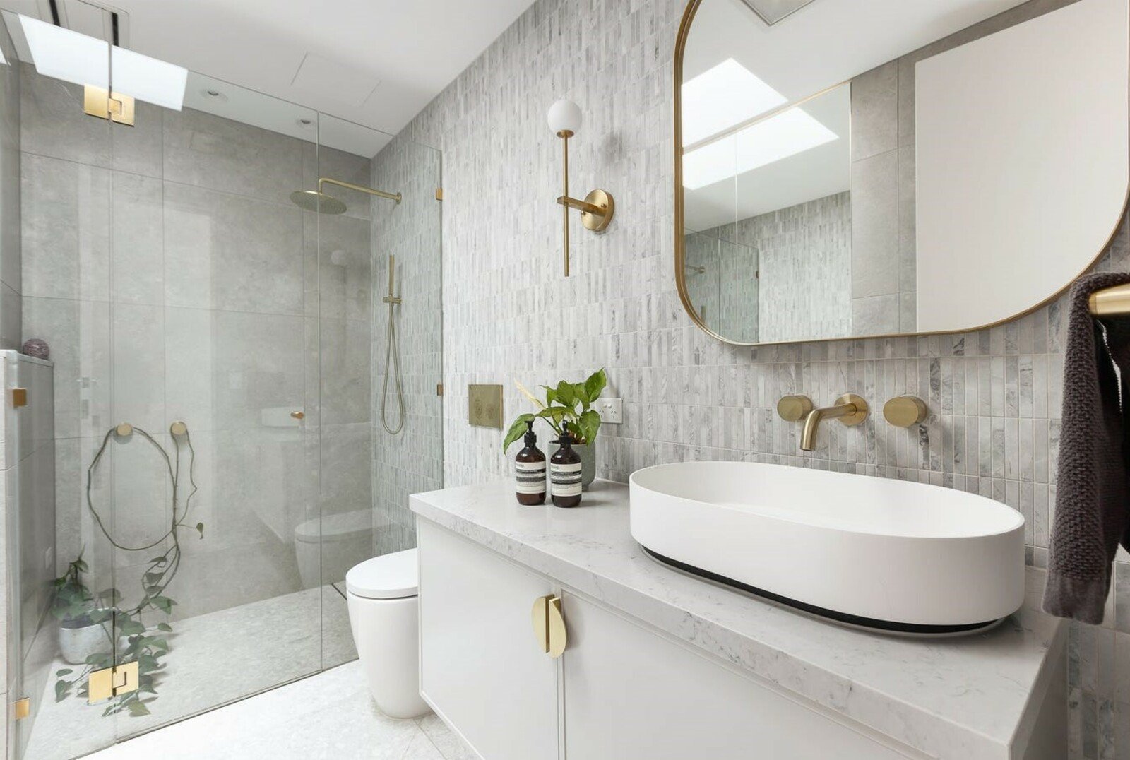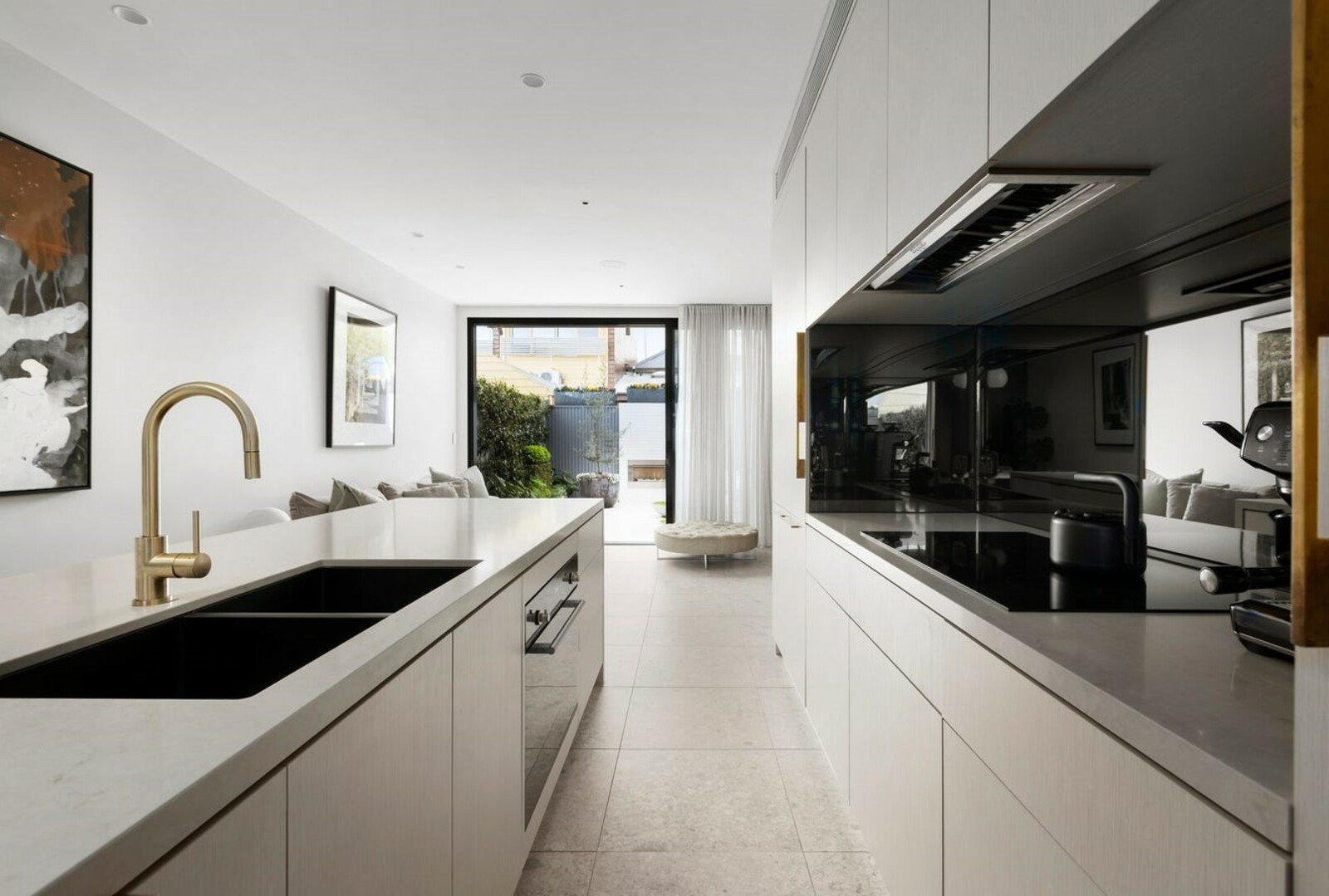 Additional highlights include ducted reverse-cycle heating and cooling with MEC heat exchange system, soaring ceilings with multiple skylights, fully tiled bathrooms with double-head showers, Italian porcelain tiles, premium tapware by ABI Interiors, designer door hardware, feature and pendant lighting from Mint Lighting, an integrated Sonos sound system with ceiling speakers.