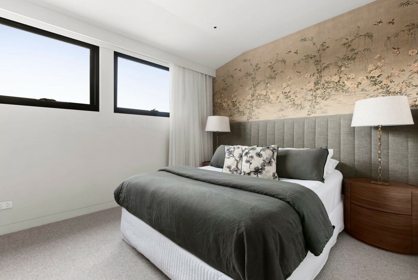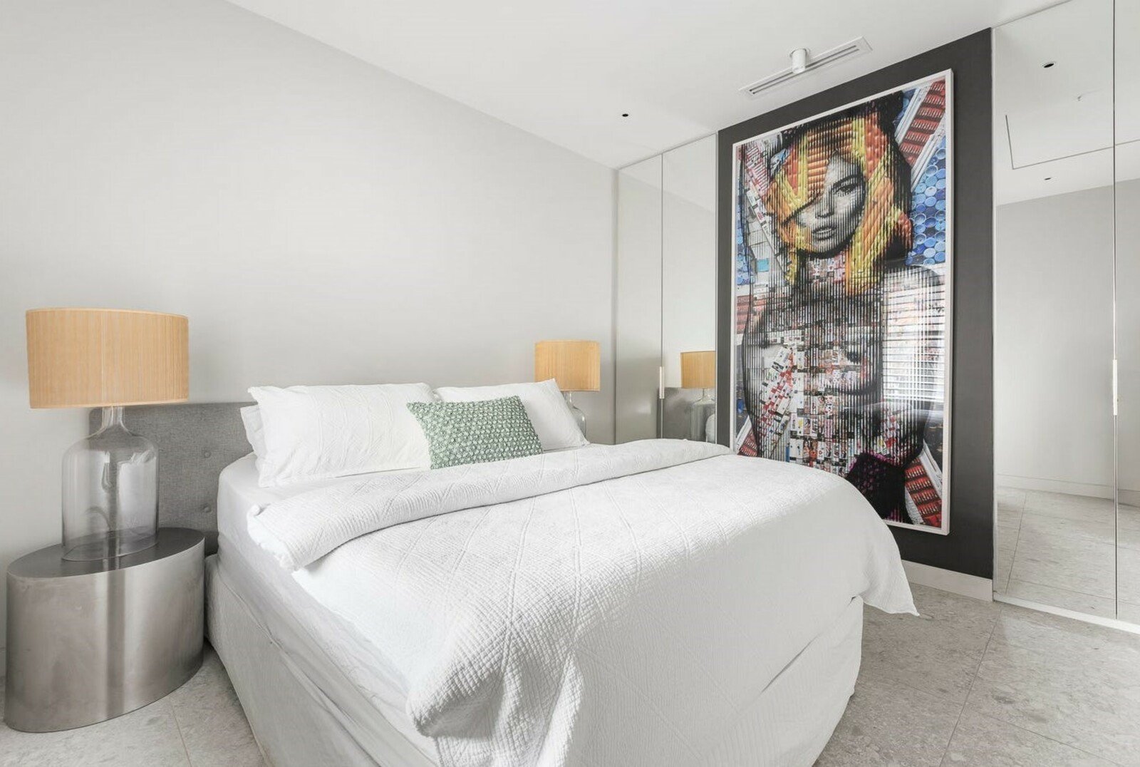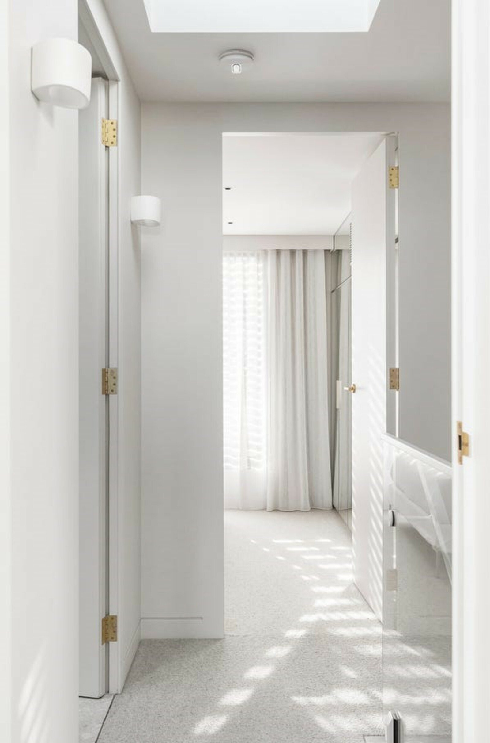 Upstairs, a skylit landing introduces two further designer bedrooms, each appointed with extensive custom built-in storage, alongside a second luxurious bathroom complete with double vanity and high-end finishes.