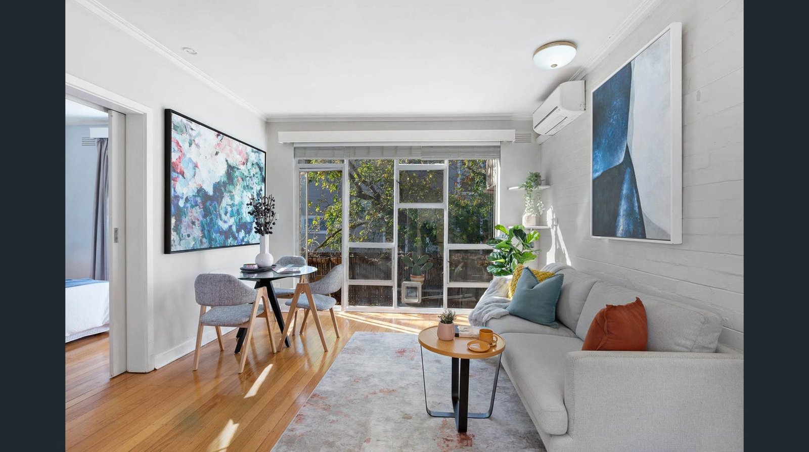 A beautifully renovated one-bedroom apartment positioned at the rear of a boutique block in South Yarra’s prized Domain precinct. Offering light-filled interiors and a desirable north-facing aspect, the home features an open-plan living and dining zone flowing to a private balcony with leafy outlooks. The updated kitchen includes stainless steel appliances, gas cooking and excellent storage, while the generous bedroom with built-in robes is serviced by a modern ensuite bathroom. Polished floorboards and split-system heating and cooling complete the package, along with the added convenience of un-allocated off-street car parking.