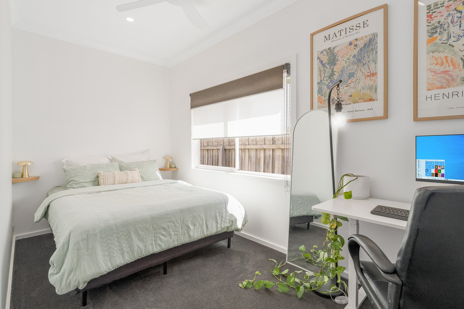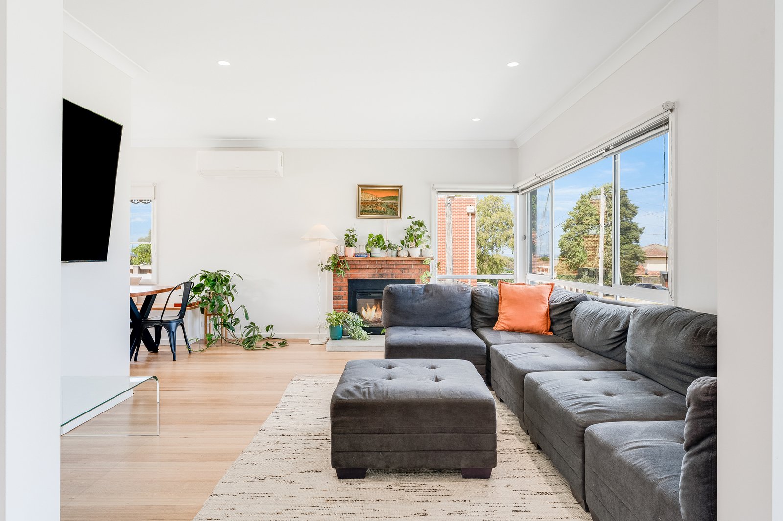 As you walk through the tranquil front yard to the welcoming porch, you’re greeted by sweeping views towards the ever-growing Geelong skyline. Inside, polished hardwood floors flow seamlessly throughout the home, adding warmth and character. Modern comforts including a split system and gas log fireplace enhance the main living area, ensuring year-round comfort.