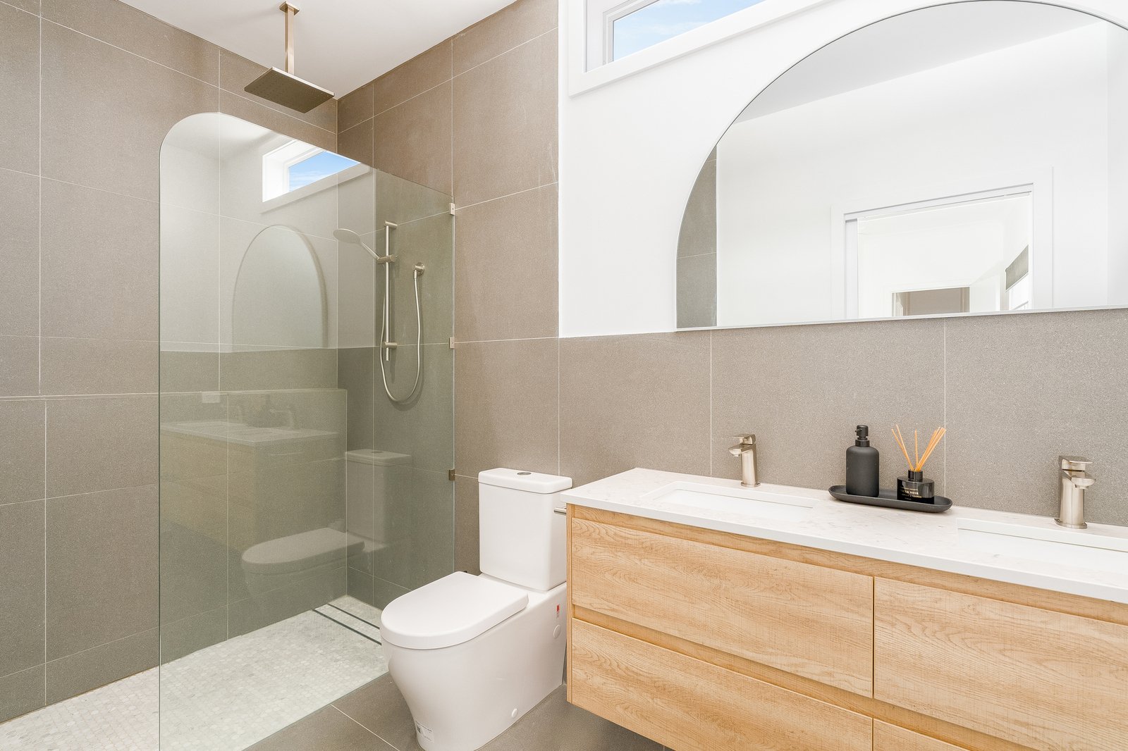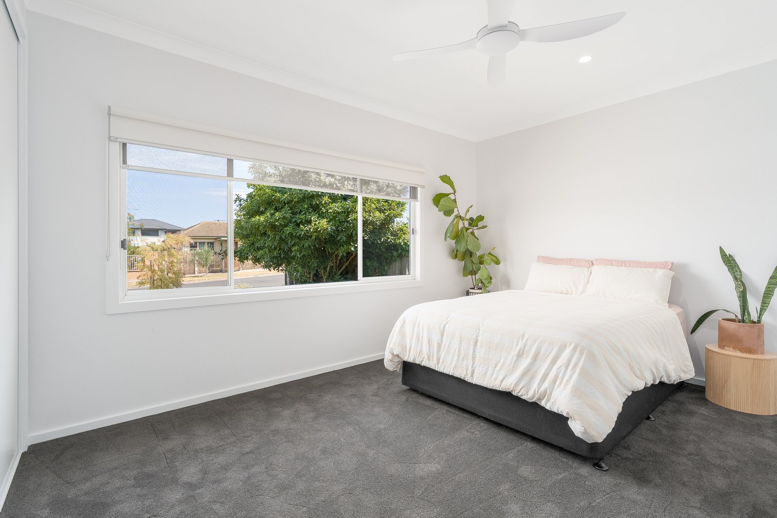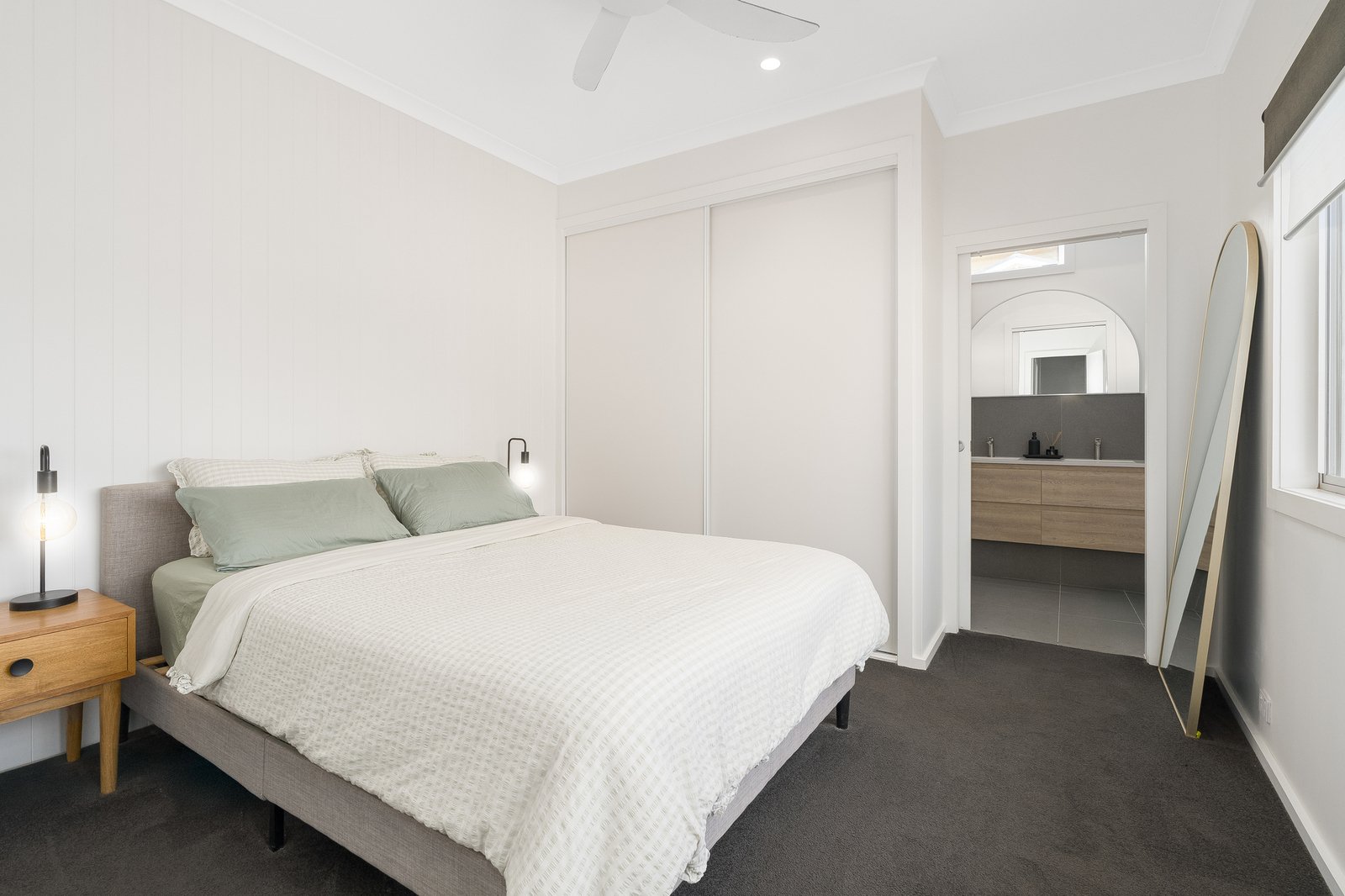All three bedrooms are positioned on the western side of the home. The main bedroom and second bedroom both feature large built-in robes, while bedrooms two and three are serviced by the centrally located main bathroom. The main bedroom is perfectly positioned to capture bay views — the ideal setting to enjoy your morning coffee from the comfort of your bed. The ensuite is complete with a double vanity and spacious walk-in shower.