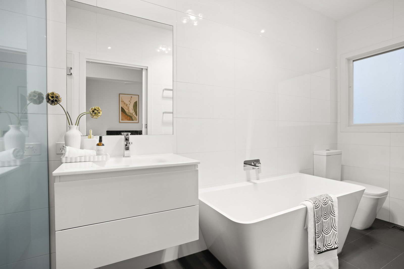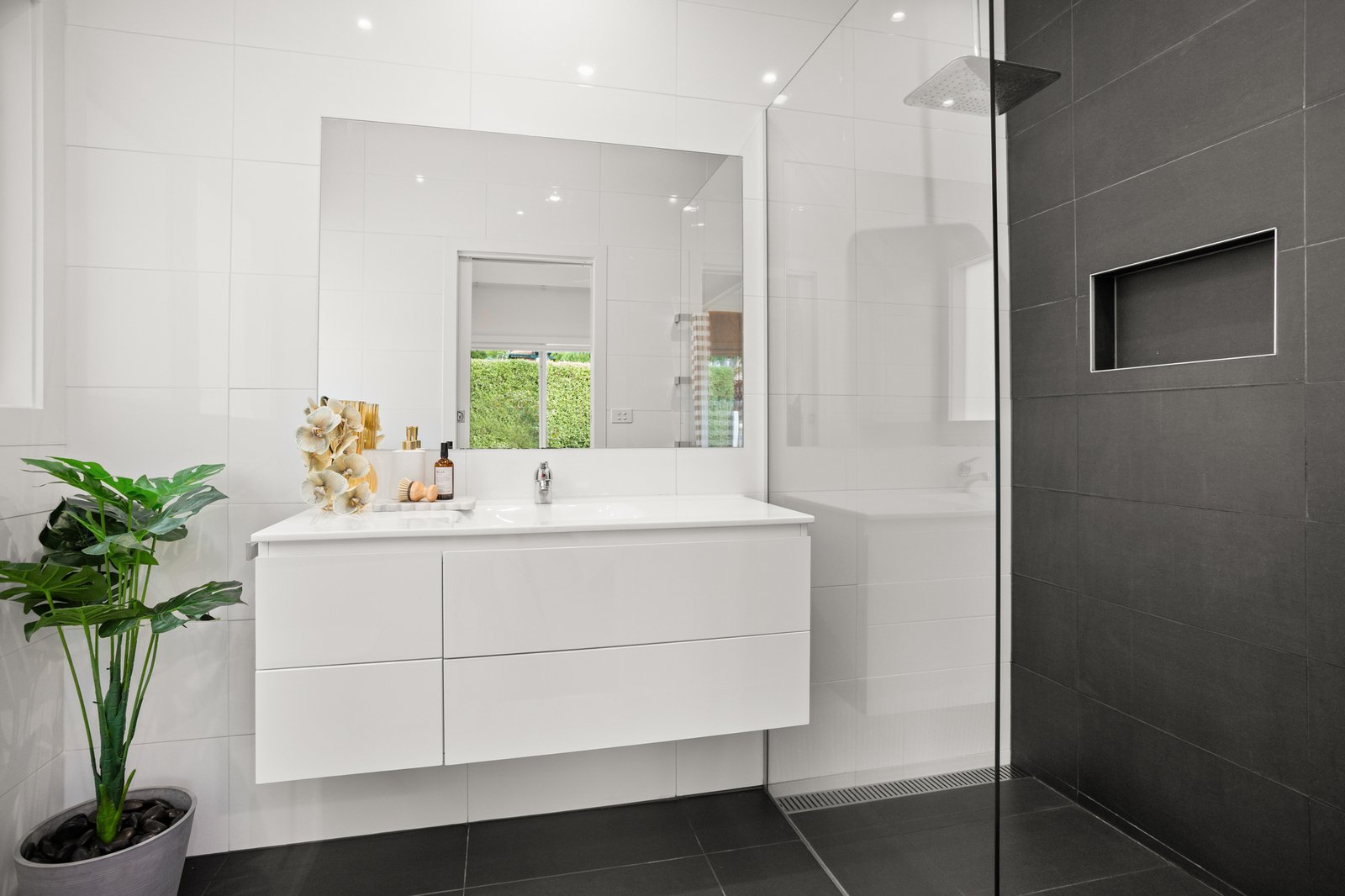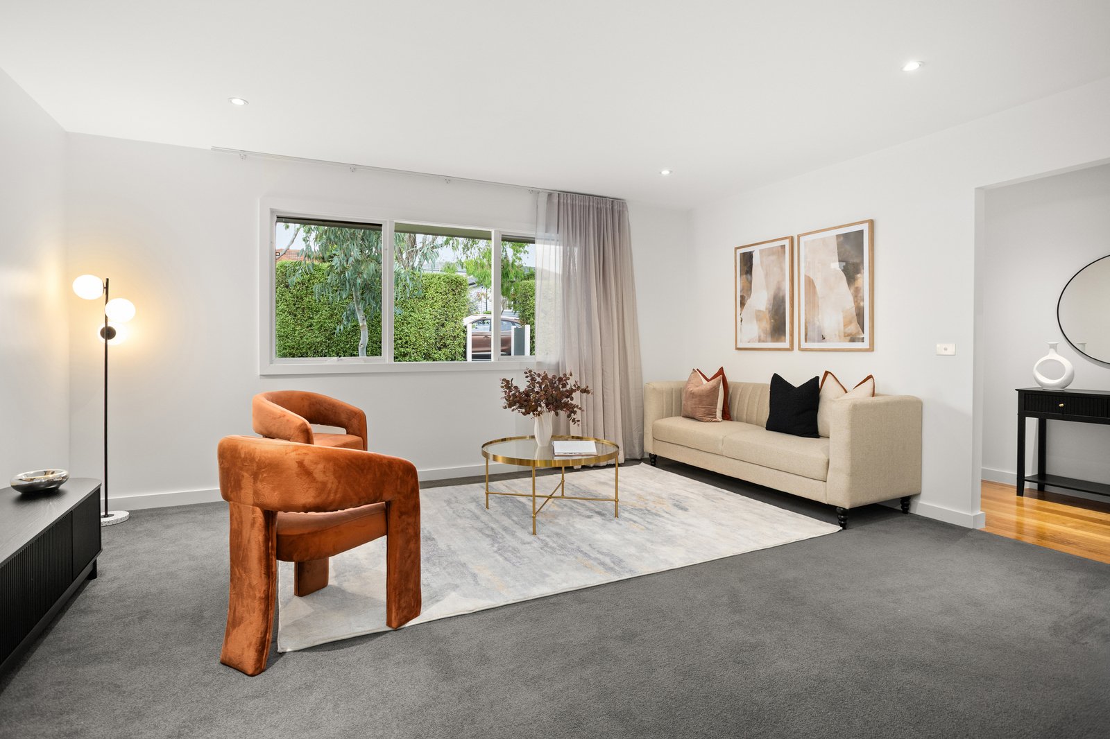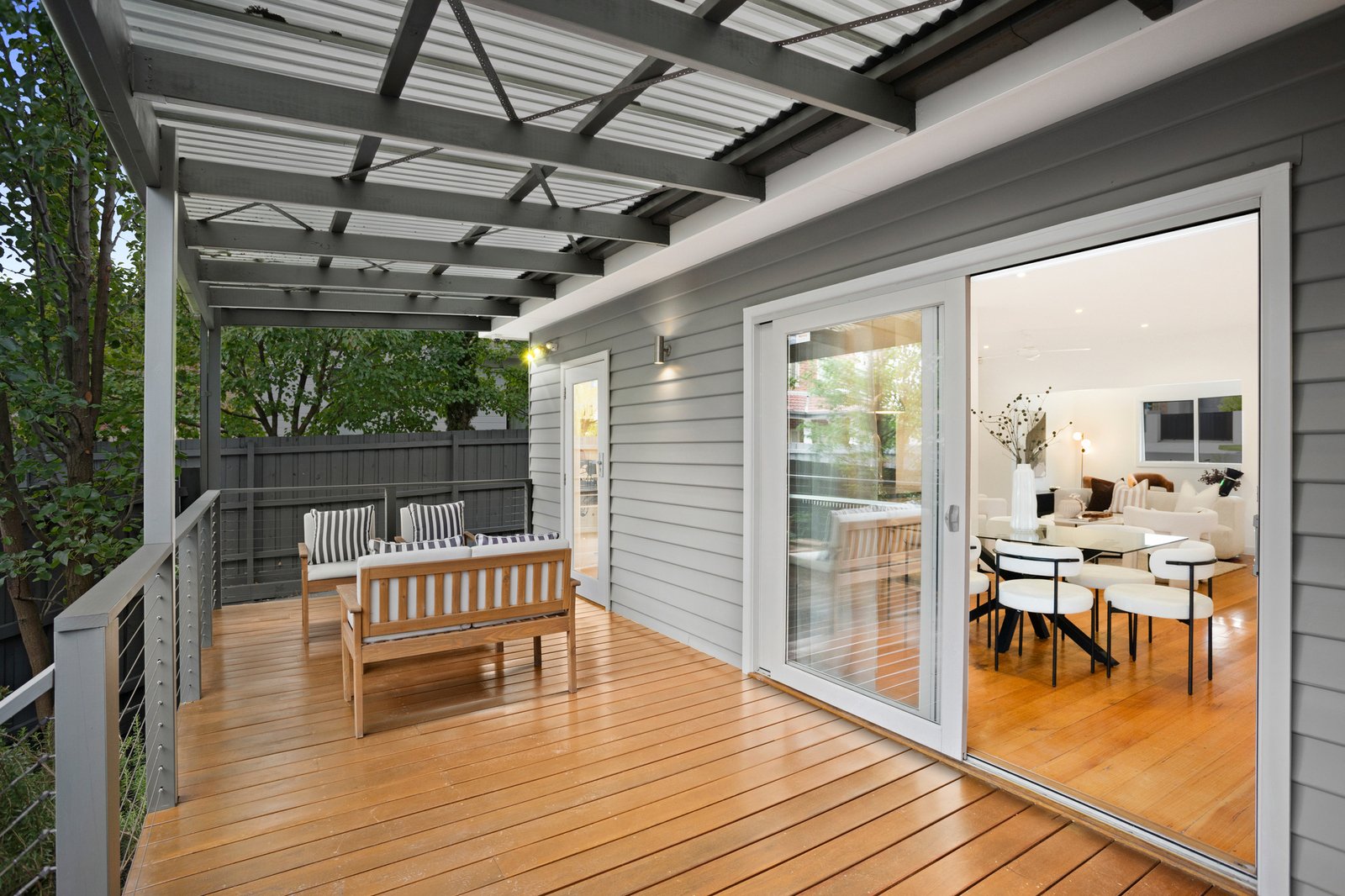 Accommodation is thoughtfully zoned for privacy. The main bedroom features built-in robes and a stylish ensuite, while two additional bedrooms (both with robes) are serviced by a central bathroom complete with bath and separate shower.