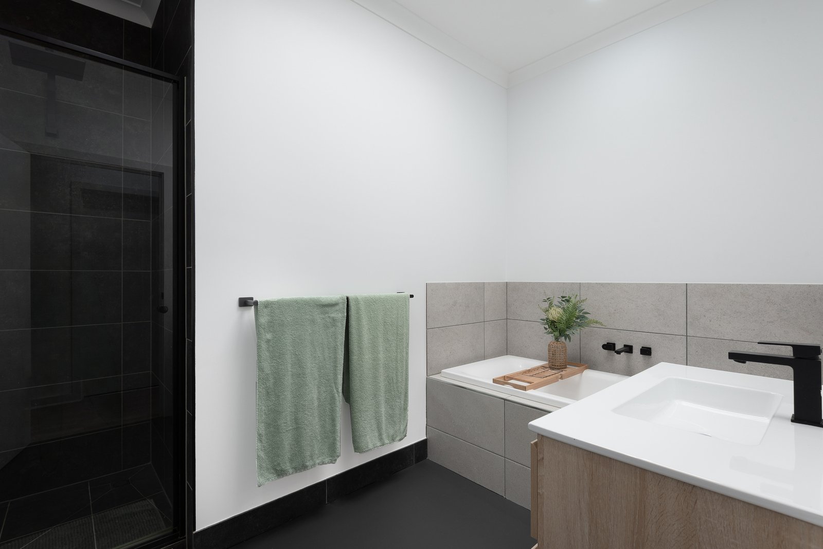 At the rear, a second living zone connects to the dedicated study and provides direct access to the backyard, offering excellent flexibility for families or those working from home. The w/c and laundry is positioned separately from open plan space for added convenience.