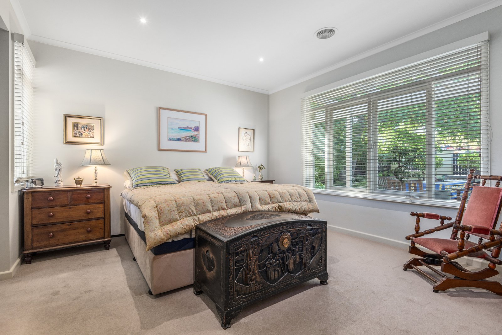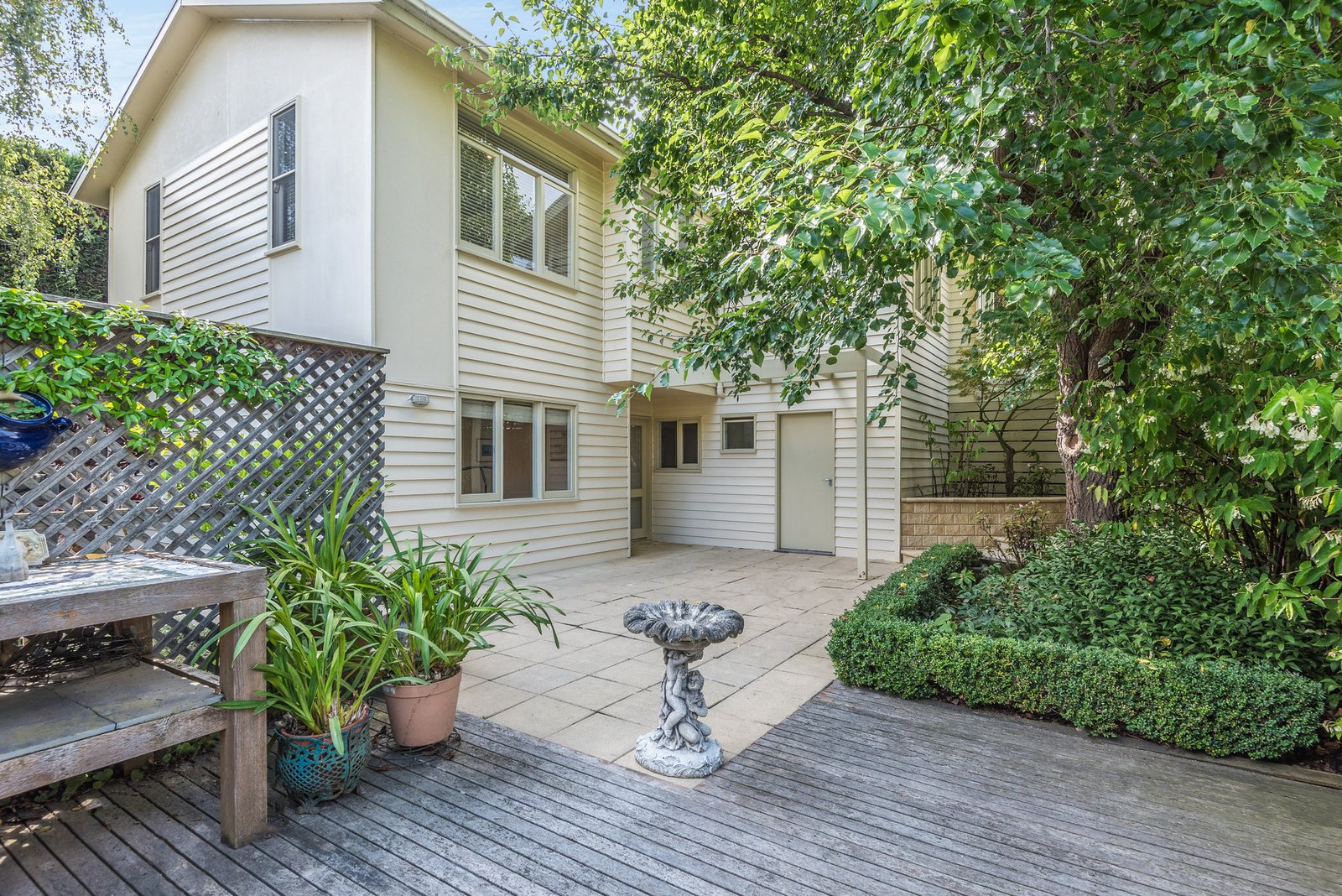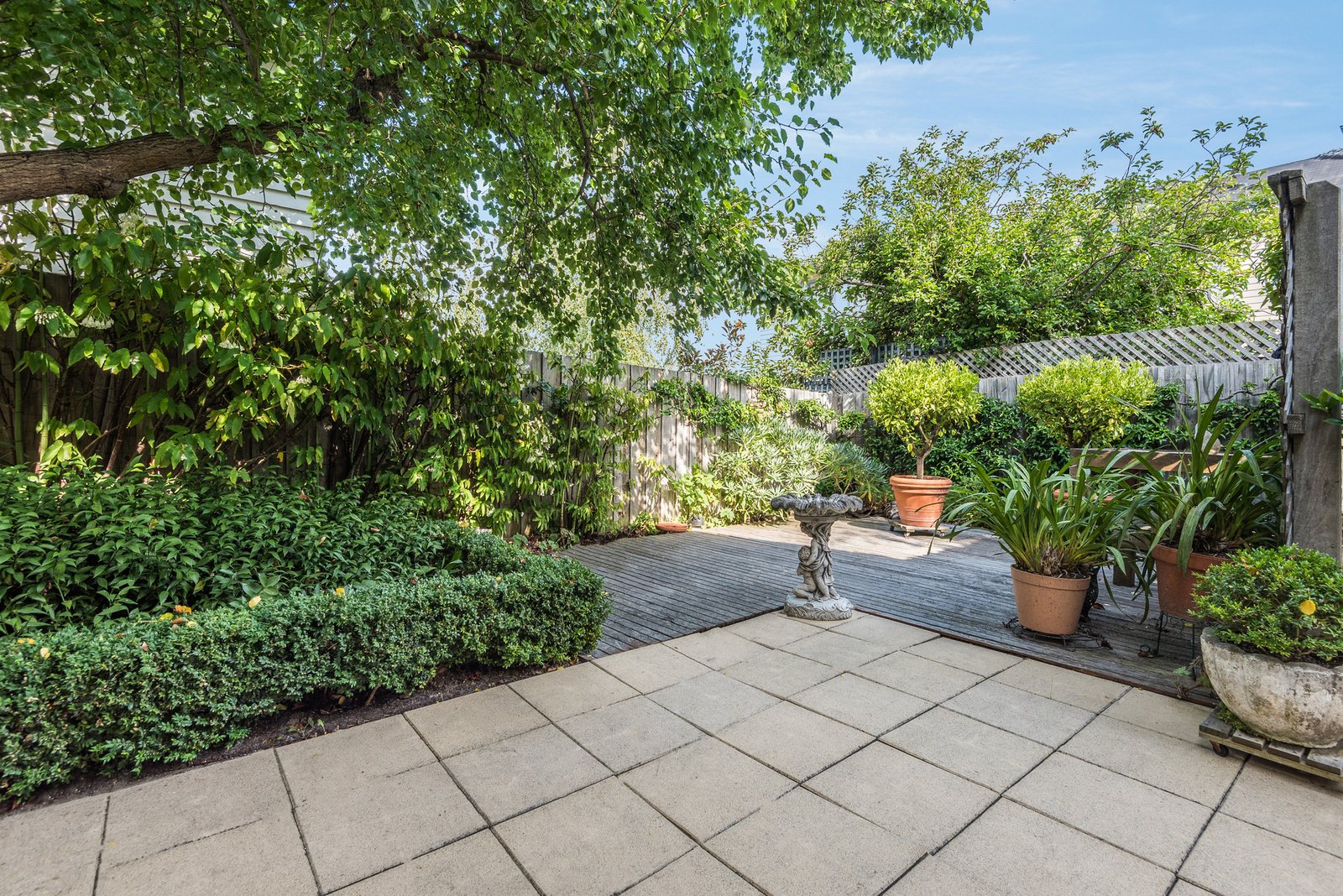 Set behind a high fence, a beautiful north-facing courtyard welcomes you on arrival, complete with a spacious entertaining deck and magnificent established gardens - providing a private space to relax or dine outdoors.