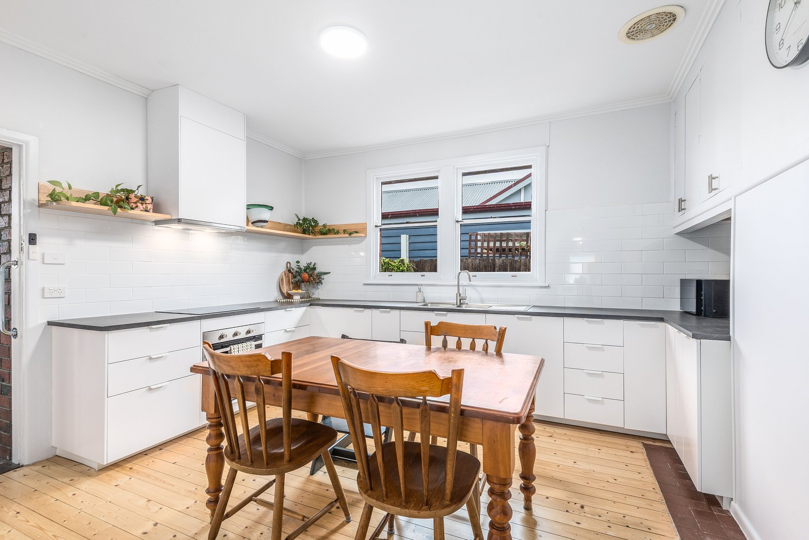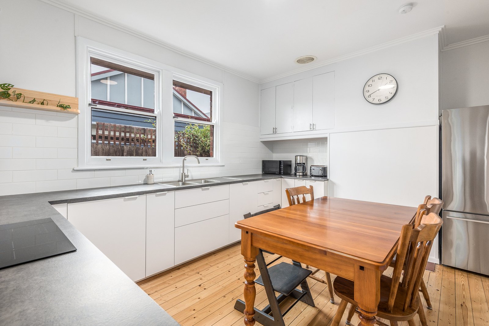 At the heart of the home, the updated kitchen and meals area features sleek cabinetry, quality appliances including a 600mm oven, induction cooktop, rangehood, and fully integrated dishwasher, well-equipped for everyday living and entertaining. North facing windows bathe the room in natural light, creating a warm and inviting atmosphere.