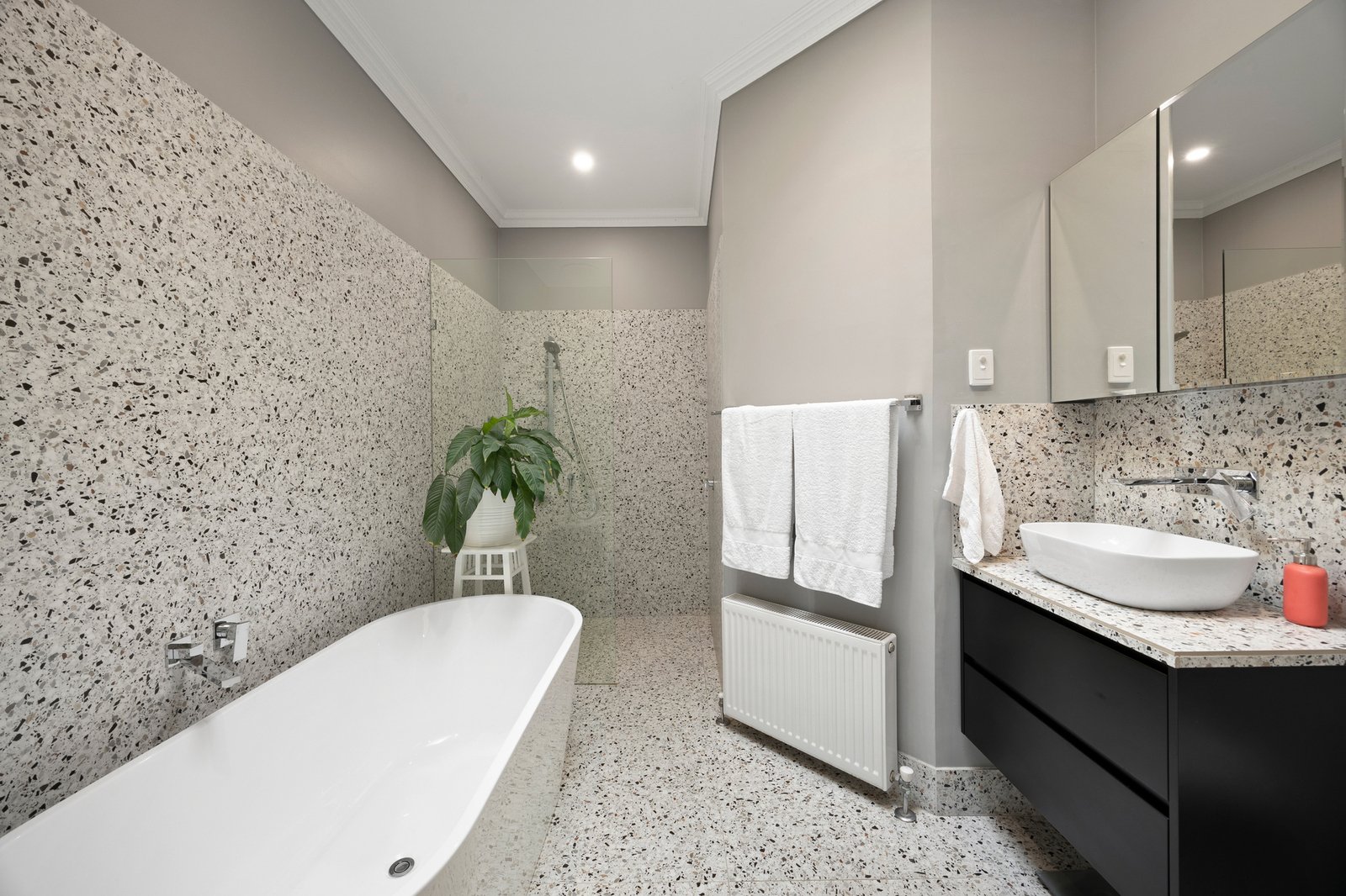 Thoughtful zoning gives the three bedrooms idyllic privacy, the main suite offering a wall of robes and skylit ensuite complete with full-size bath and beautiful tiles. A sparkling bathroom services the remainder of the home which also comes with a fitted study zone and brilliant wine-store plus hydronic heating, multiple split systems & ducted vacuuming. A Euro laundry, two auto garages and a remote gate in addition to a 3.5kw solar array round off the pristine package.