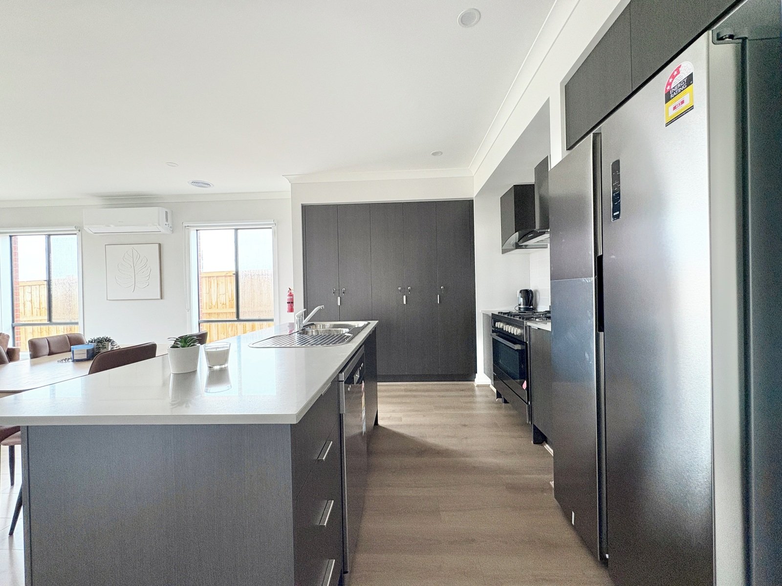 - 900mm gas cook top and electric oven, plus dishwasher