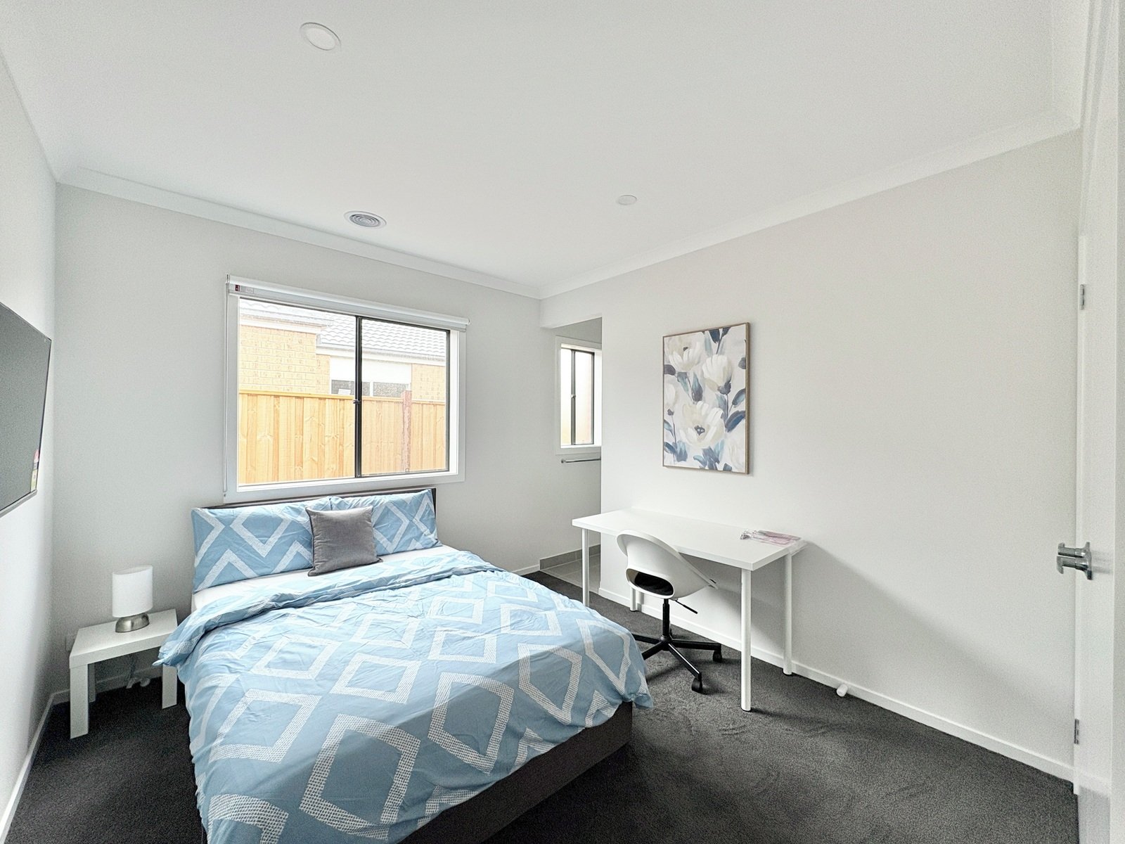 - Desk and chair provided