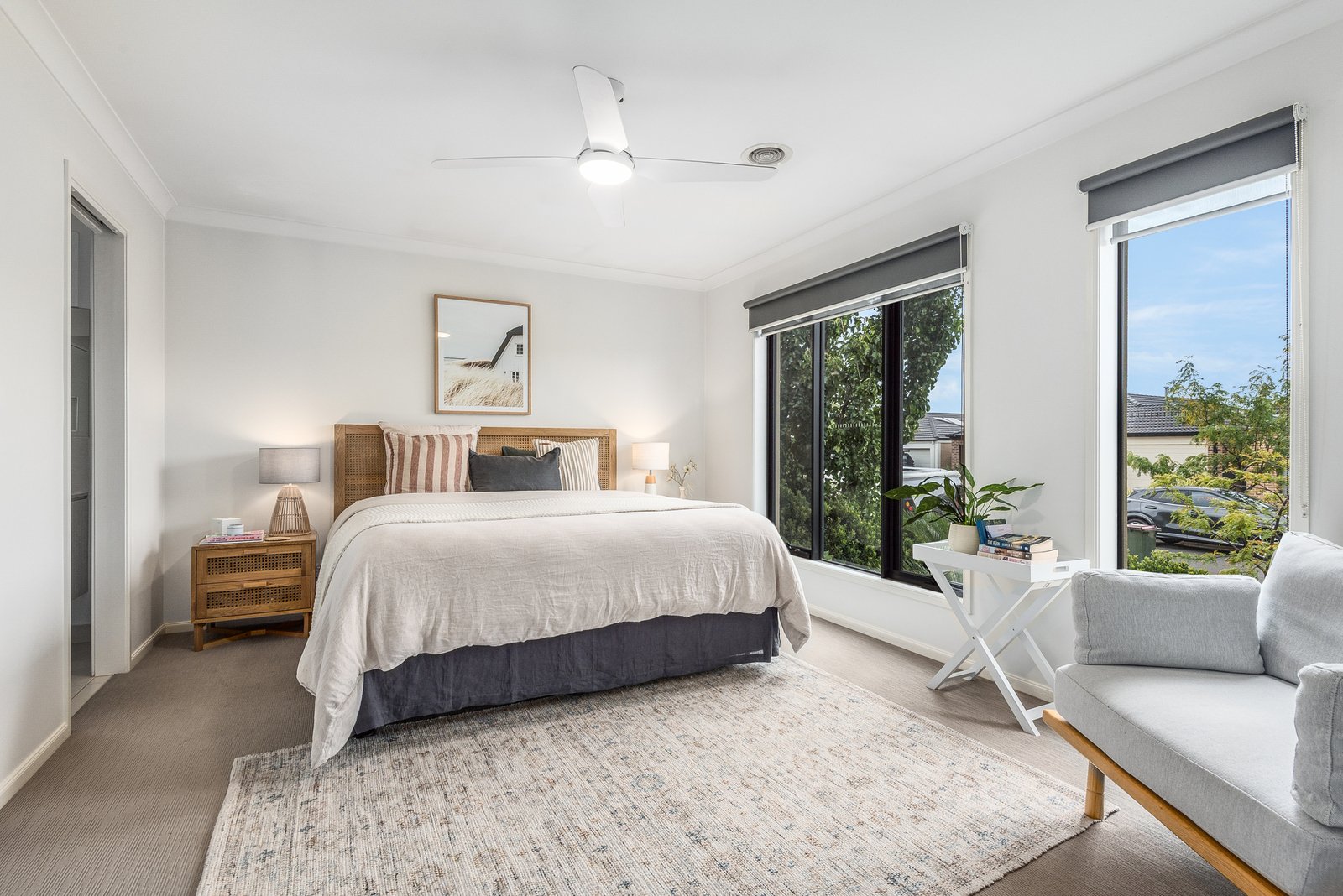 Beautifully maintained landscaped gardens and a classic contemporary façade will impress on arrival. Stepping inside, a wide central hallway takes your eye through the length of the home showcasing elegant neutral interiors, modern flooring, and light-filled spaces. Off the entry, the spacious main bedroom features generous walk-in robes, a ceiling fan, and a tastefully presented ensuite with double vanity. Three additional bedrooms all include built-in robes, serviced by a stylish family bathroom with a luxurious bath, separate shower, modern vanity, and a separate wc.