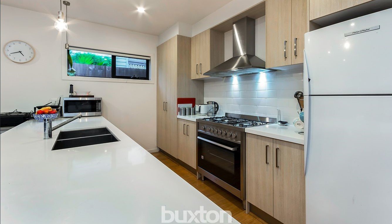 Boasting a flowing floor plan, high ceilings and desirable north/west facing aspects, the property is filled with natural light throughout. An impressive open plan kitchen, dining and living zone forms the heart of the home. The well-appointed kitchen features a gas cook-top, dishwasher and ample storage, while the spacious dining and living areas overlook the rear yard and provide seamless outdoor access – perfect for entertaining or relaxing.