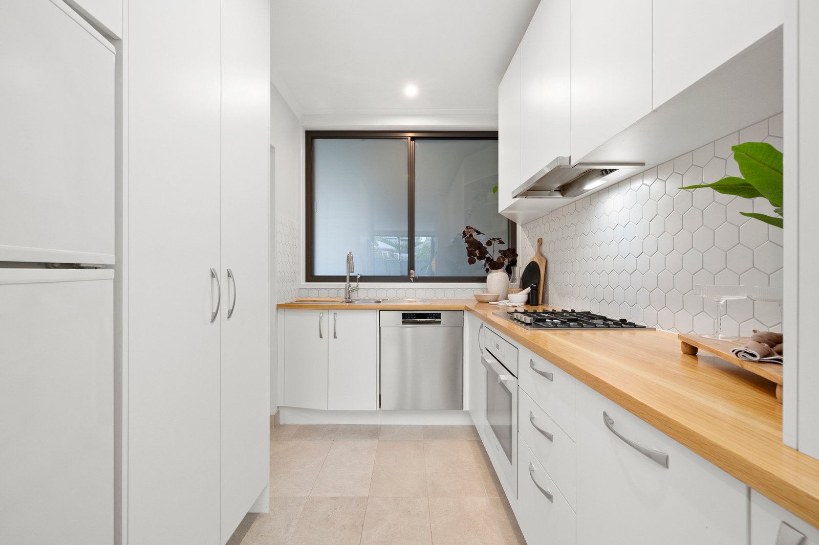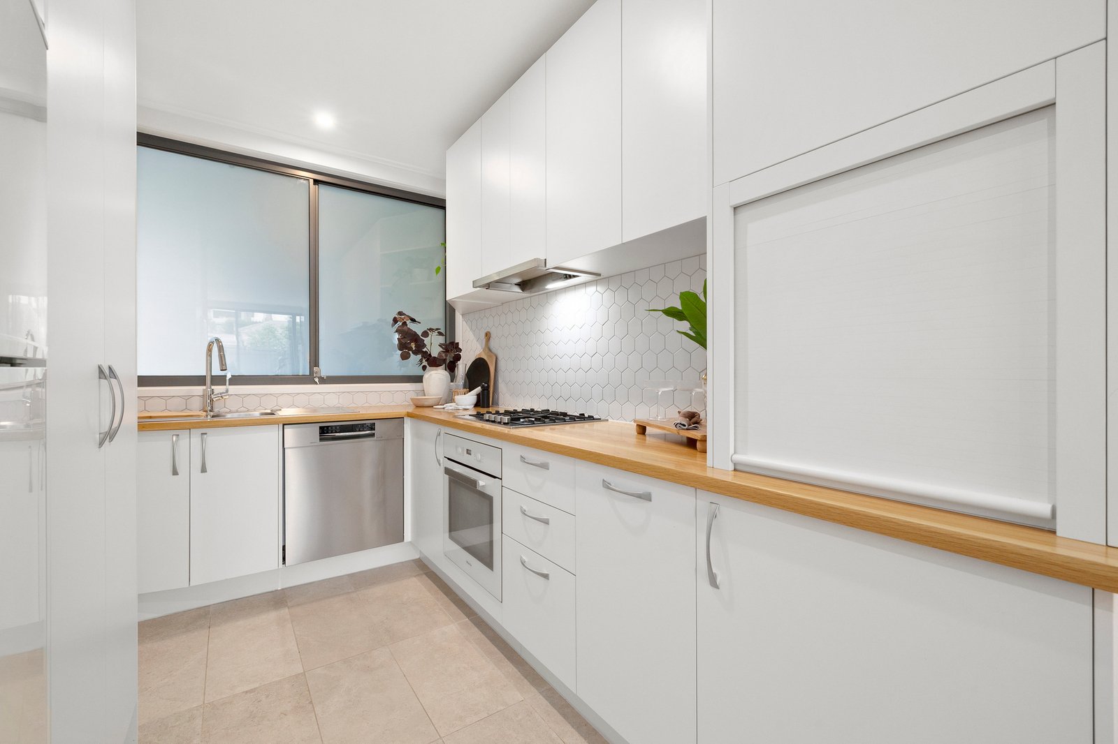 A private, low-maintenance courtyard sets the tone for relaxed coastal living — the perfect spot for a morning coffee or a post-beach unwind. Inside, light-filled open plan living and dining areas create a welcoming heart of the home, seamlessly connecting to the outdoors for easy entertaining. The contemporary kitchen is sleek and functional, complete with quality appliances and generous storage, making hosting a breeze.