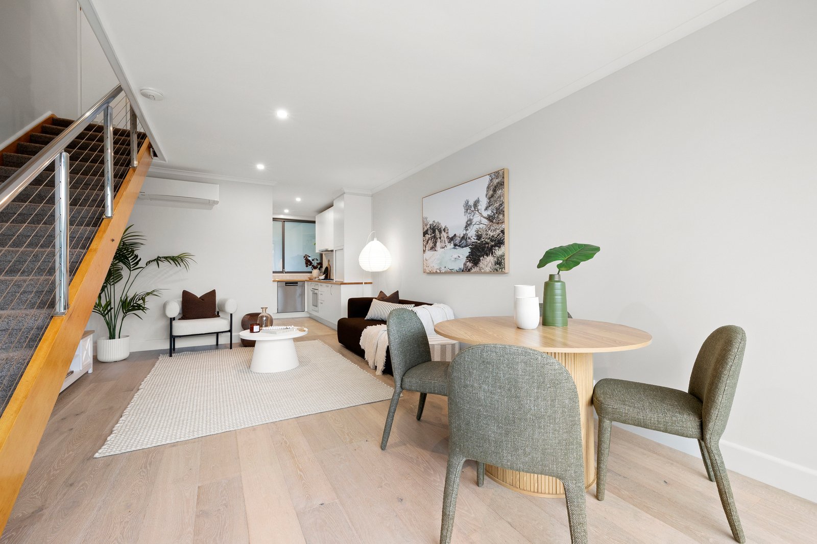 This inviting townhouse features engineered floors throughout the downstairs living, plush carpet adorning the bedrooms, reverse-cycle air-conditioning upstairs and down, and a carport on-title just beyond the back gate.