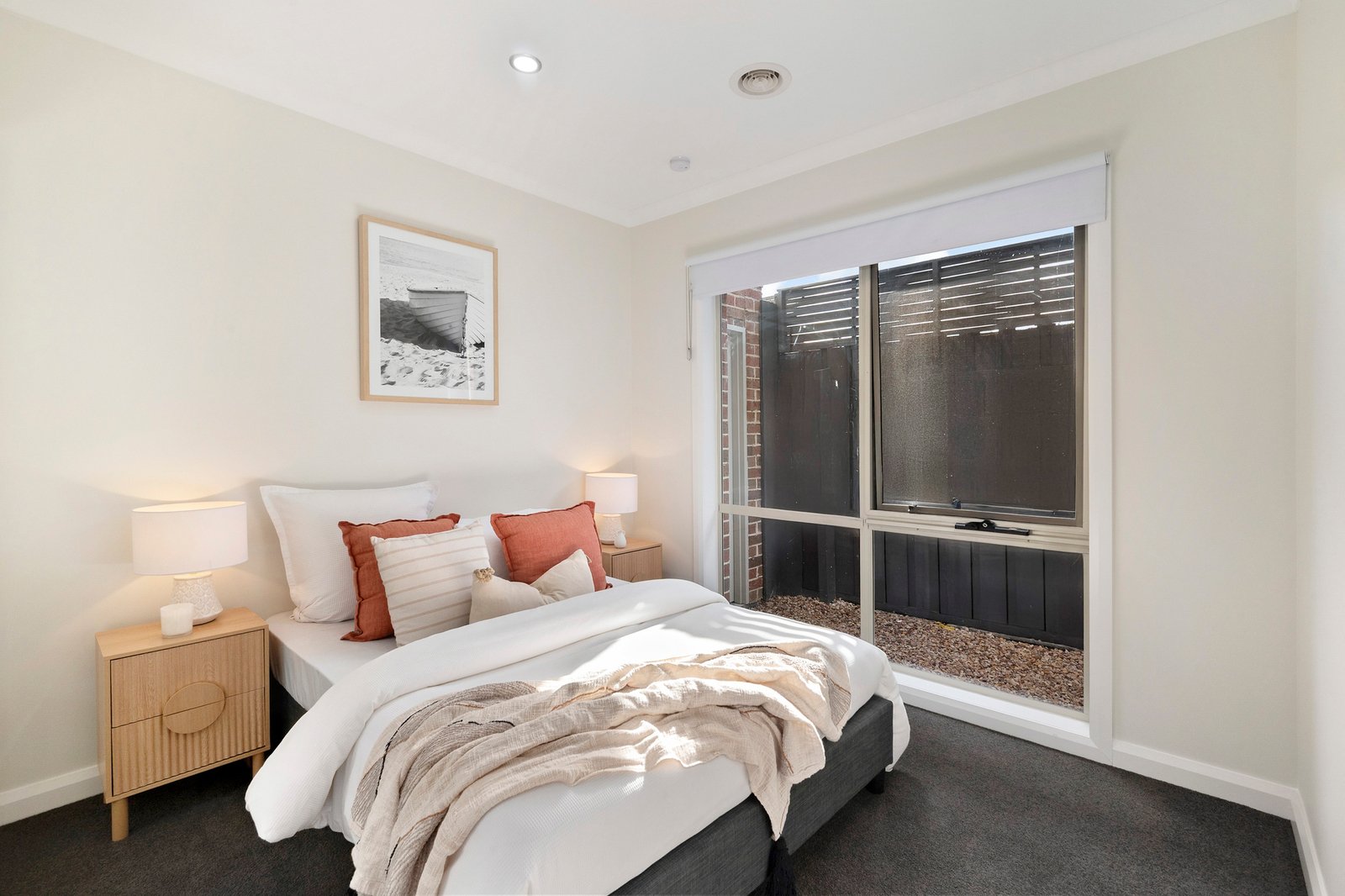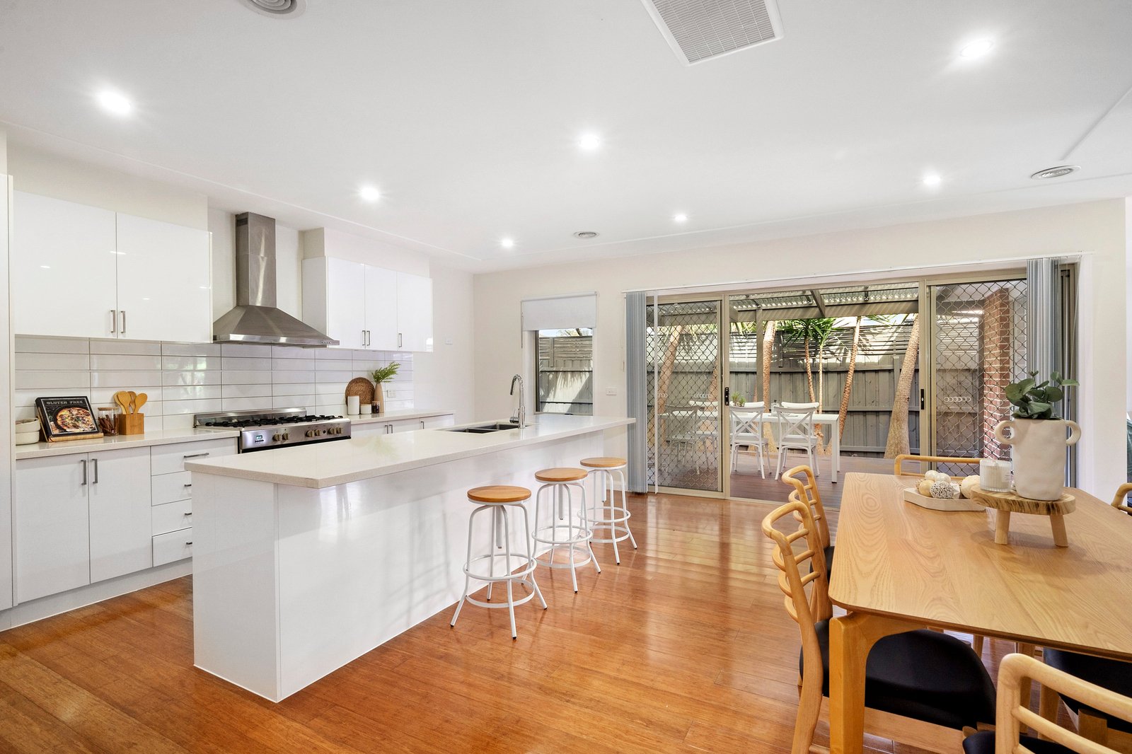 Surround yourself with peace, privacy and space in this stylish 3-bedroom, 2-bathroom townhouse. Offering effortless single-level modern living, ideal for first homebuyers and downsizers, this quiet rear home is located for lifestyle and the convenience. Local shops, public transport, beaches and freeways are all at your fingertips! The lounge room is spacious and filled with natural light, flowing to a full kitchen equipped with stainless-steel appliances and a stone island bench. The generous dining space opens to the outdoors for effortless entertaining, where a covered deck surrounded by gardens beckons relaxation. The front master bedroom is appointed with a walk-in robe and ensuite, with two further robed bedrooms sharing the bright main bathroom with separate shower, bath and toilet. Refreshed with new carpet and paint, this fantastic find is complete with a dedicated laundry, ducted heating, split-system and double garage.
