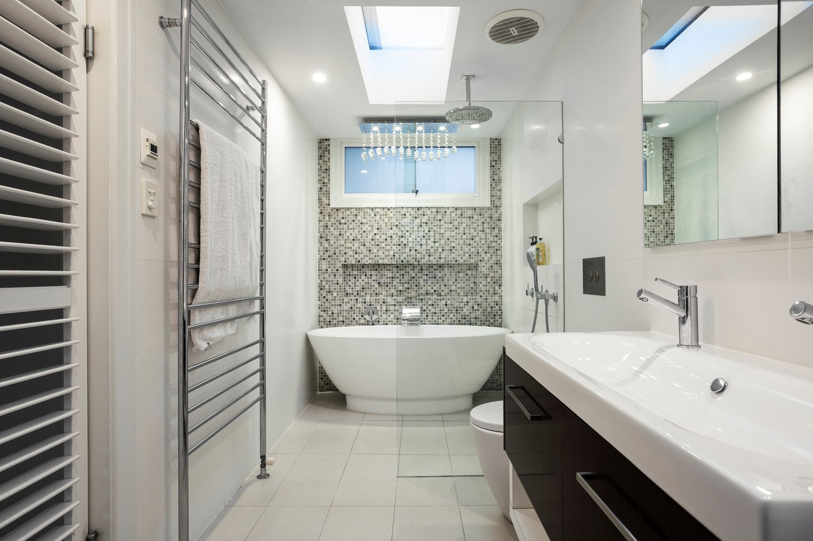 Accommodation adapts effortlessly to every age and stage. The luxurious main suite features a skylit dressing room and a day-spa inspired ensuite with twin vanity, heated towel rail and indulgent freestanding bath. Two further robed bedrooms share a mosaic-tiled bathroom, while a separate poolside wing is crowned by a panoramic study capturing breathtaking views across Hampton.