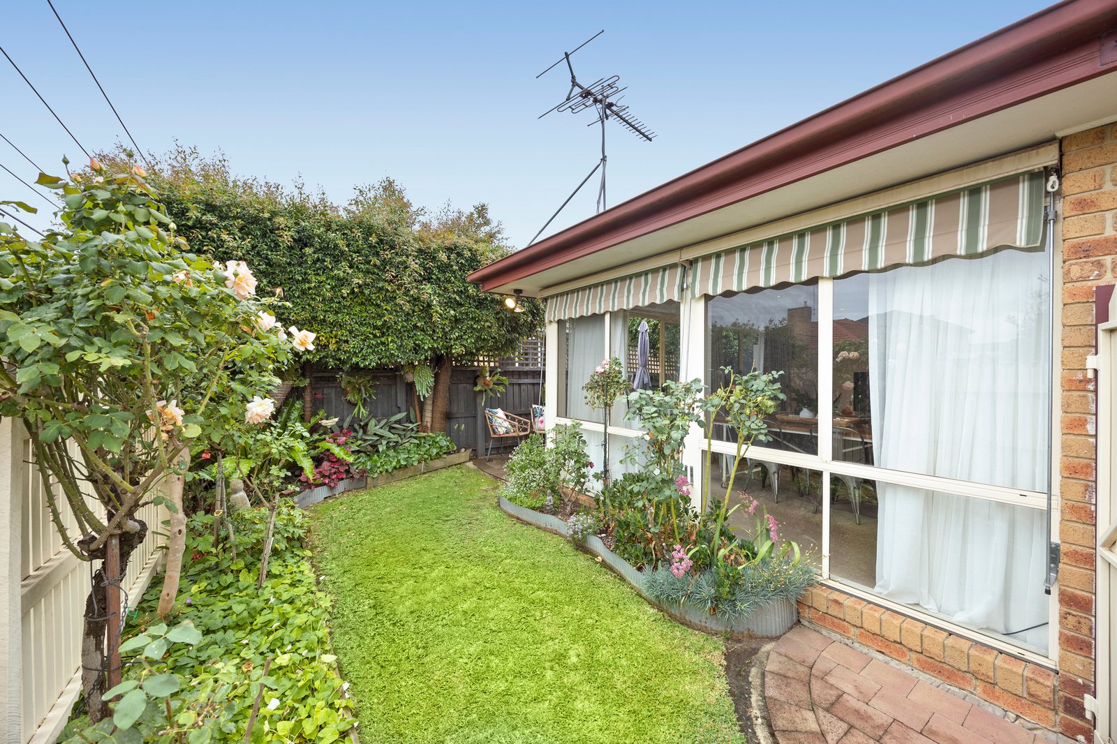 Accommodation includes two generously sized carpeted bedrooms, each with built-in robes, serviced by a bright tiled bathroom complete with a spa bath and separate shower — offering a touch of everyday luxury. Step outside to a low-maintenance garden and private entertaining area, while a single garage with remote entry and internal access adds convenience and security.