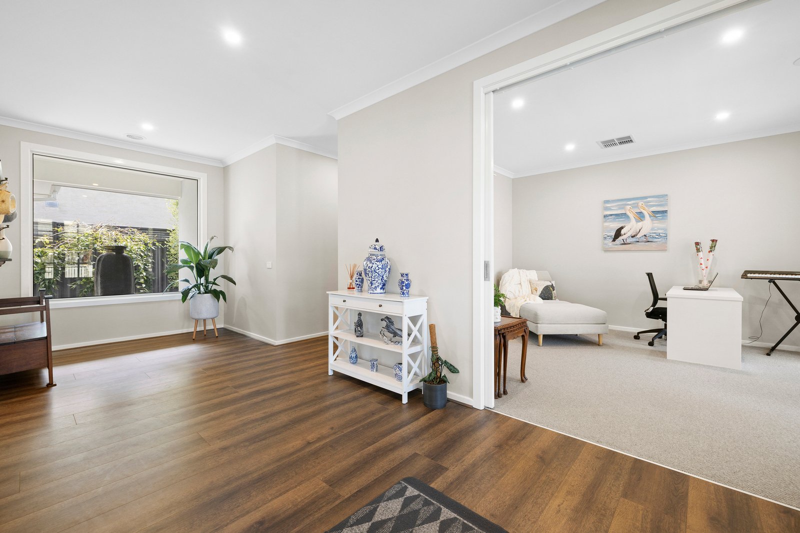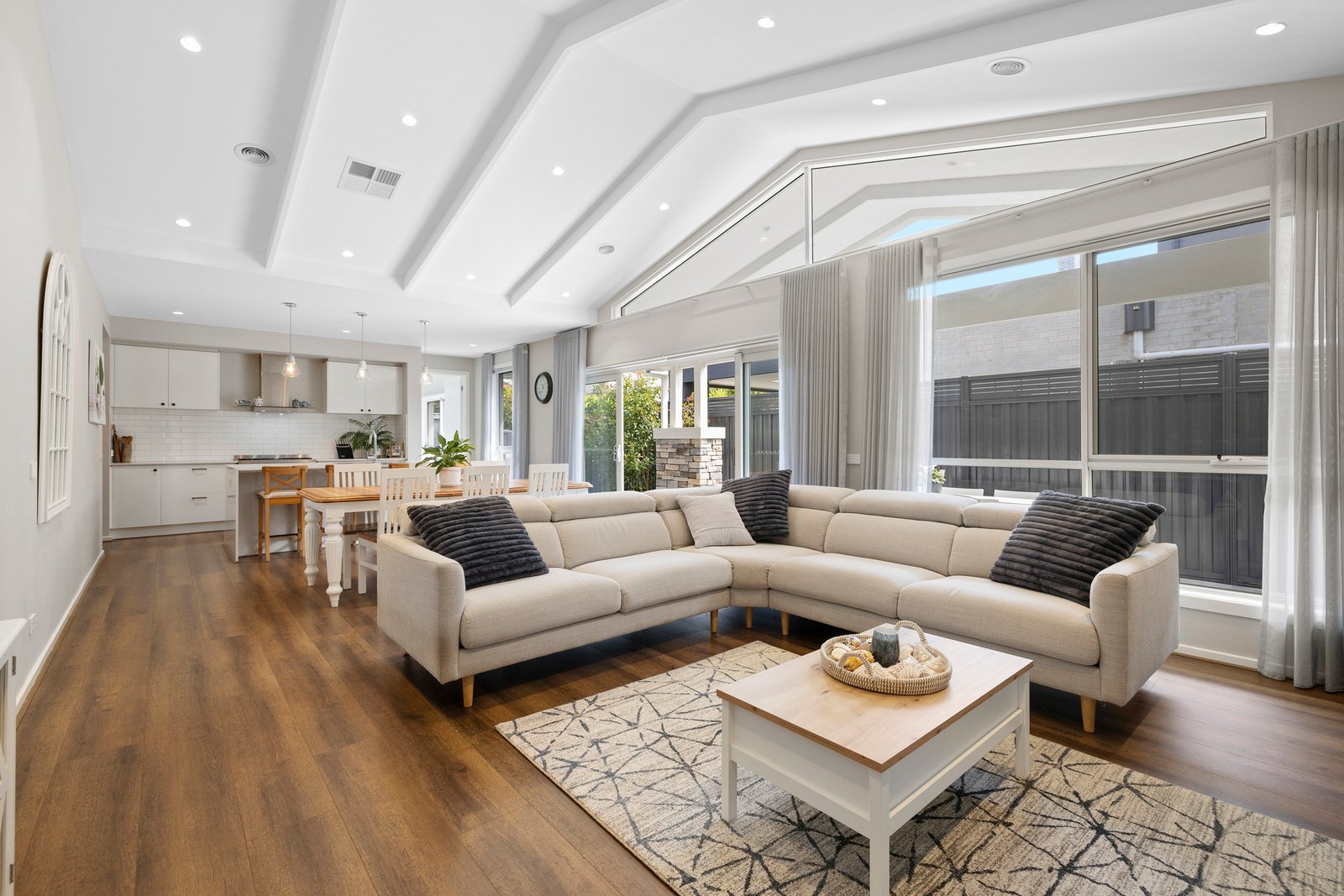 Sized to entertain on a grand scale with immense living-dining set beneath a lofty 3.7m vaulted ceiling and a sun-drenched, stone-colonnaded al fresco area promising all-season entertaining, this innovative design adapts to every stage and style of single-level lifestyle with a quiet lounge facing a private lawned garden (just waiting to shine with a future pool) and a double-doored multi-purpose third zone positioned to work as home-office, sized to relax, and already adding to the grandeur of the central entry.