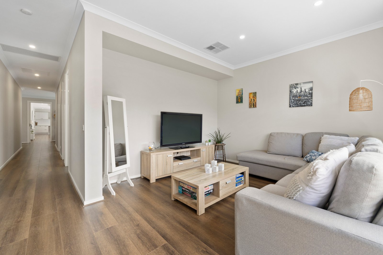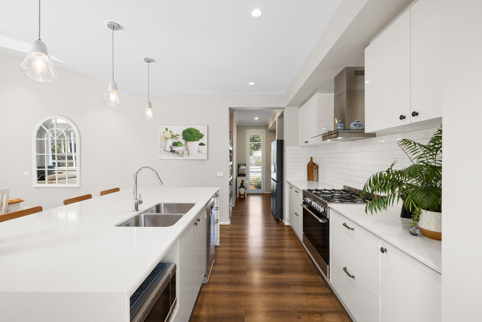 With a state-of-the-art prestige appliance kitchen (with 900mm range) centre-stage beyond an immense stone-wrapped dining bench, there’s easy amenity with a walk-in storeroom (pantry or linen-press) and a large laundry...and timeless design with luxe bathrooms including a vast ensuite, great storage including built-in and walk-in robes. Styed with cool stone benchtops, the latest loop-pile carpets, wideboard flooring and airy plantation-shutters, this centrally heated & cooled home has the security of Smartphone video-intercom and the ease of a big double auto-garage.