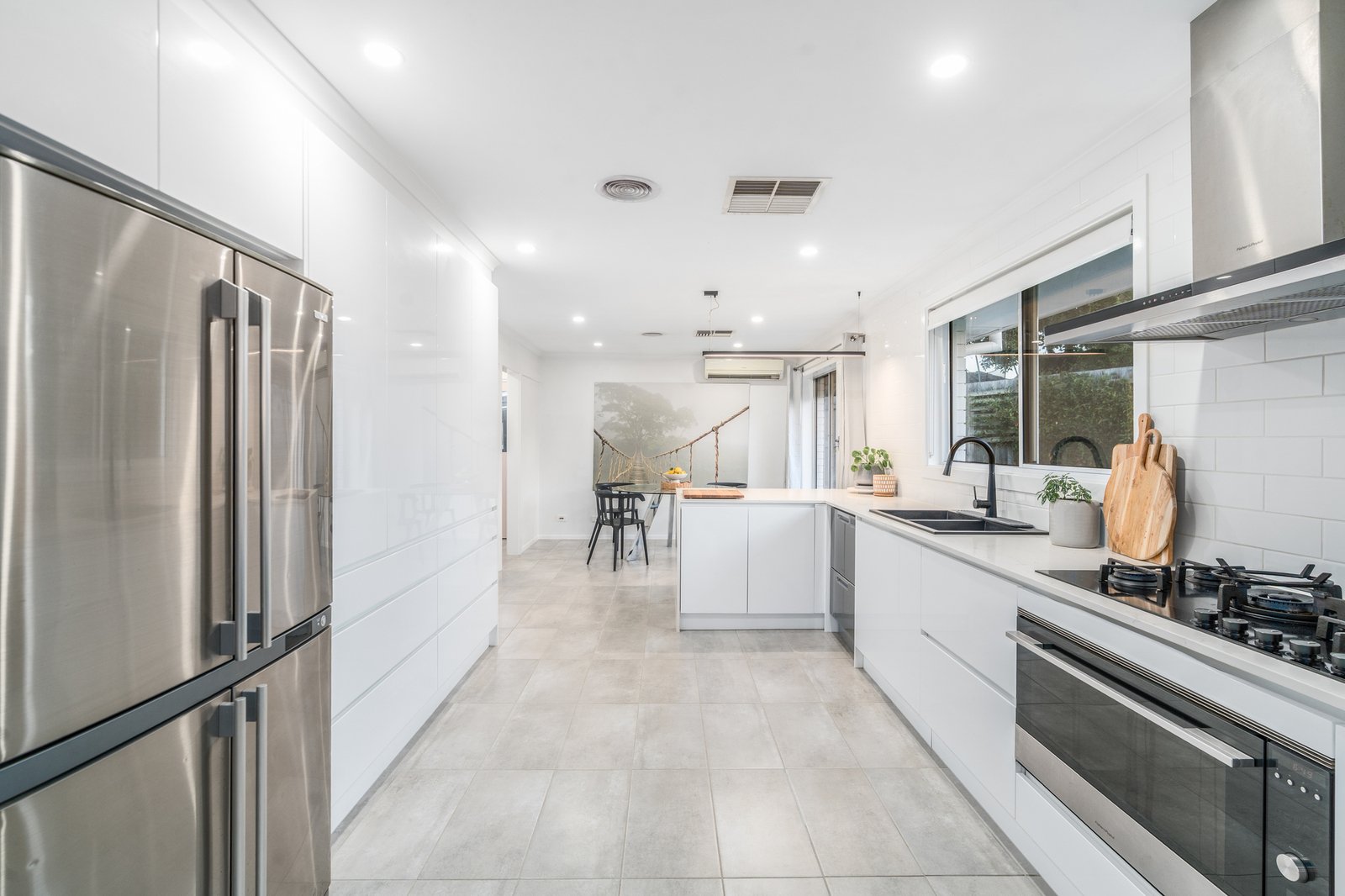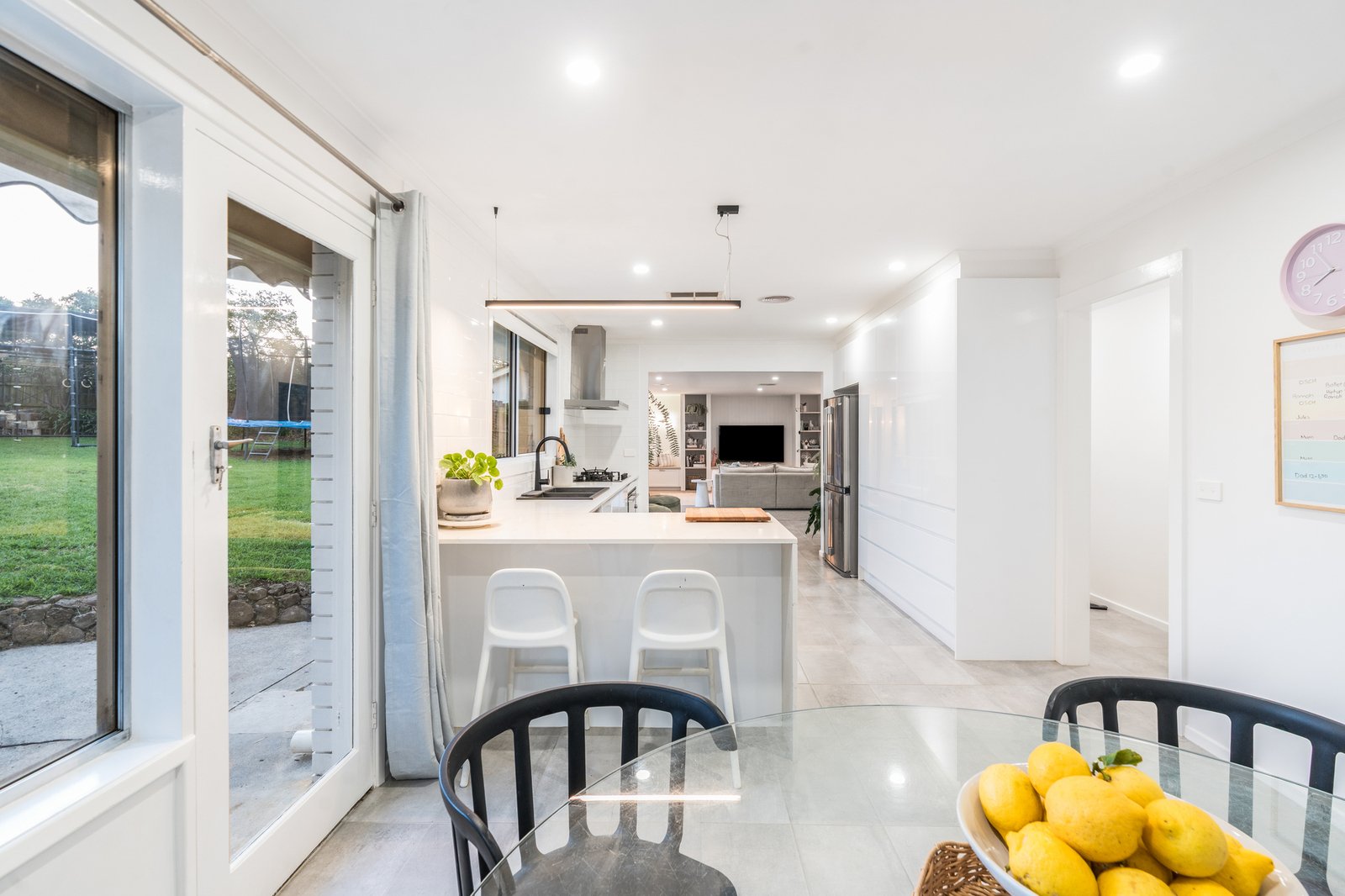 Inside, light-filled living area is framed by picturesque garden vistas from every window, creating a warm and inviting atmosphere for both everyday family life and effortless entertaining. At the heart of the home, the stunning kitchen and dining zone has been thoughtfully renovated to a high standard. Appointed with quality gas cooktop, electric oven, dishwasher and a generous pantry space, the kitchen is as practical as it is stylish. Seamlessly connecting to the expansive backyard and overlooked from the living areas, it provides exceptional flow for families with children and those who love to entertain.