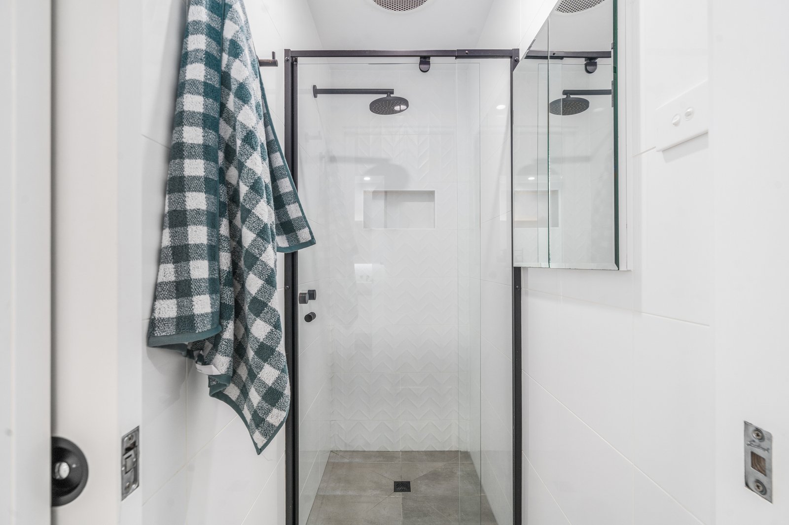 Designed with growing families in mind, the property offers three bedrooms with BIR’s downstairs. The cleverly configured bathroom zone includes a dedicated shower room, a spacious main bathroom complete with double vanity and bath, and a separate toilet for added convenience. Upstairs, the oversized master suite is a true retreat, offering multiple built-in robes, a built-in study desk, drop-down TV, split system heating and cooling, and a beautifully renovated ensuite. Additional features throughout the home include ducted heating and cooling downstairs, ceiling fans, under-stair storage, a built-in study desk in the lounge, and a well-positioned laundry with direct external access.