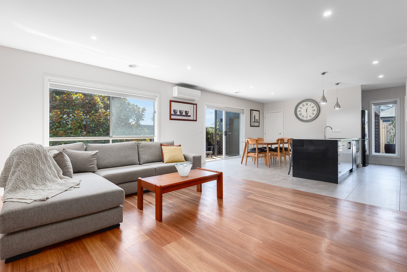 Outside, the north facing courtyard provides a private space for relaxing or entertaining, with a lush lawn area and established gardens creating a tranquil setting. The double remote garage includes direct internal entry for secure and convenient access to the home.