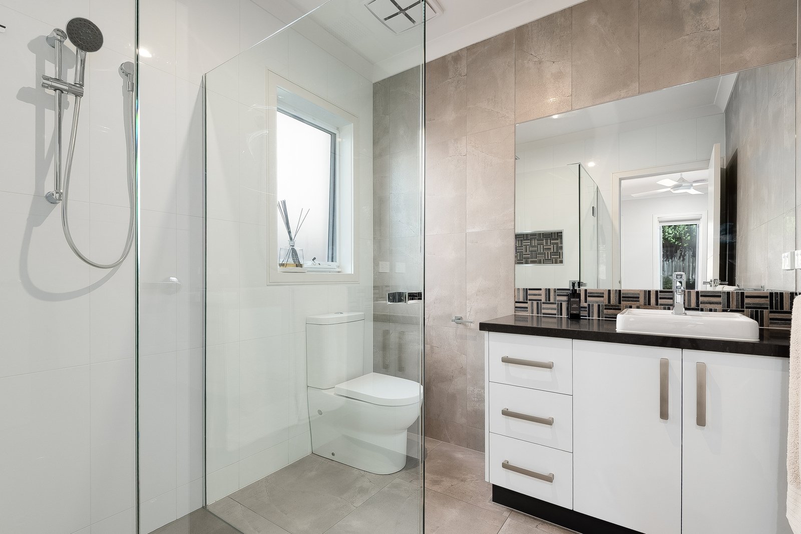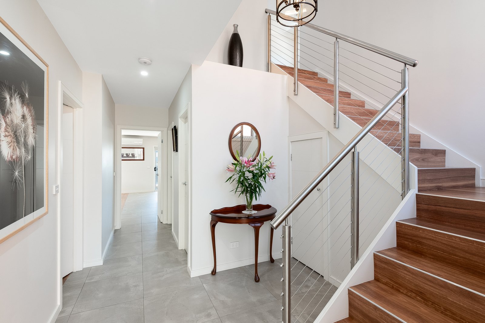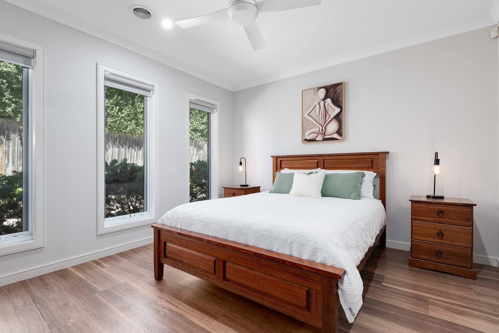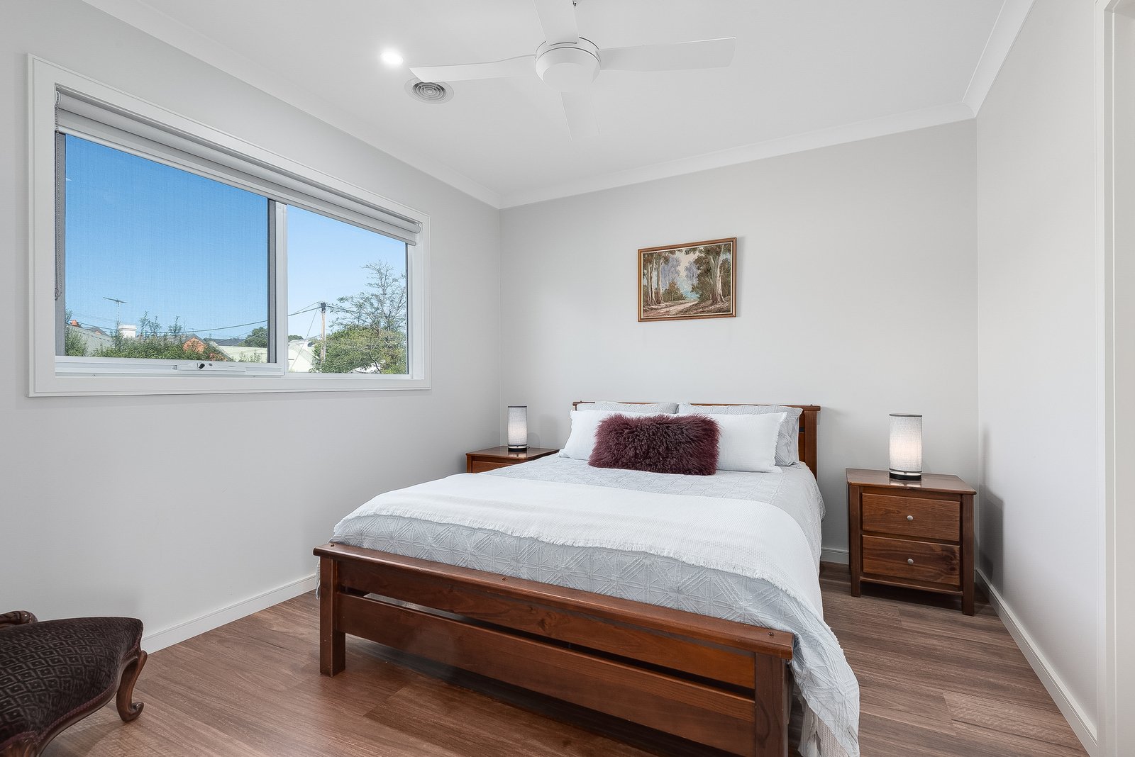 Designed for optimum comfort and functionality, additional features include ducted heating, split system heating and cooling, ceiling fans in all bedrooms, a well-appointed laundry with generous storage, ground floor powder room, understairs storage, and upstairs linen storage.