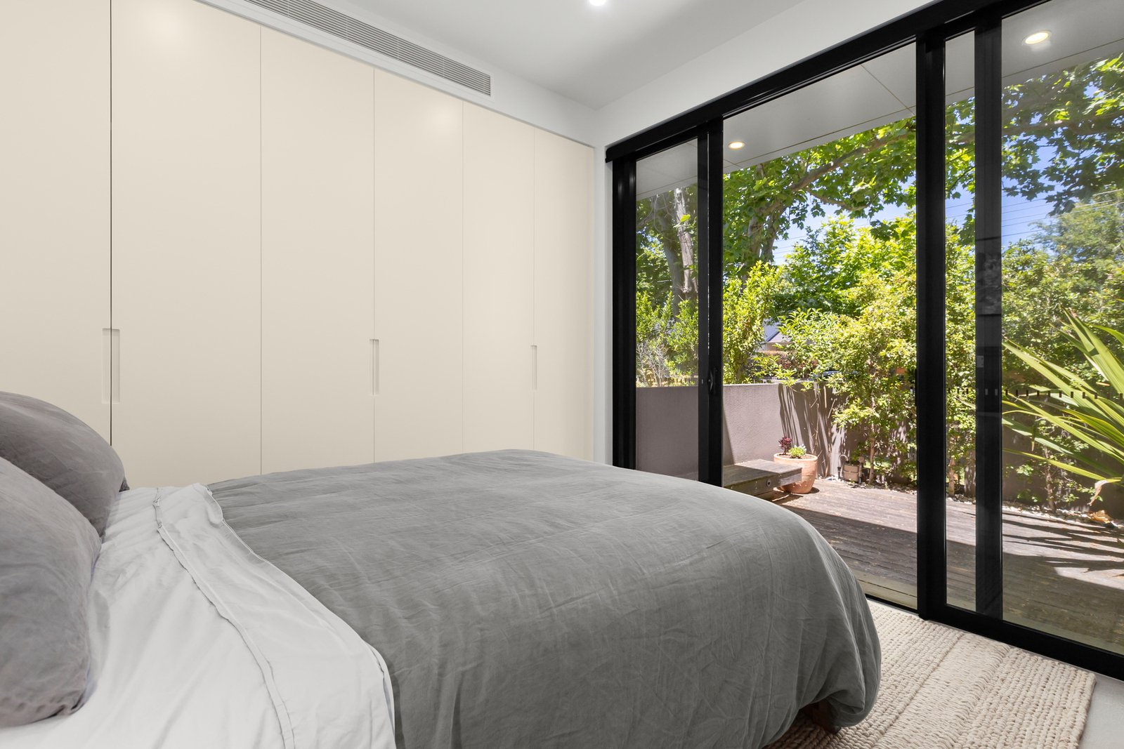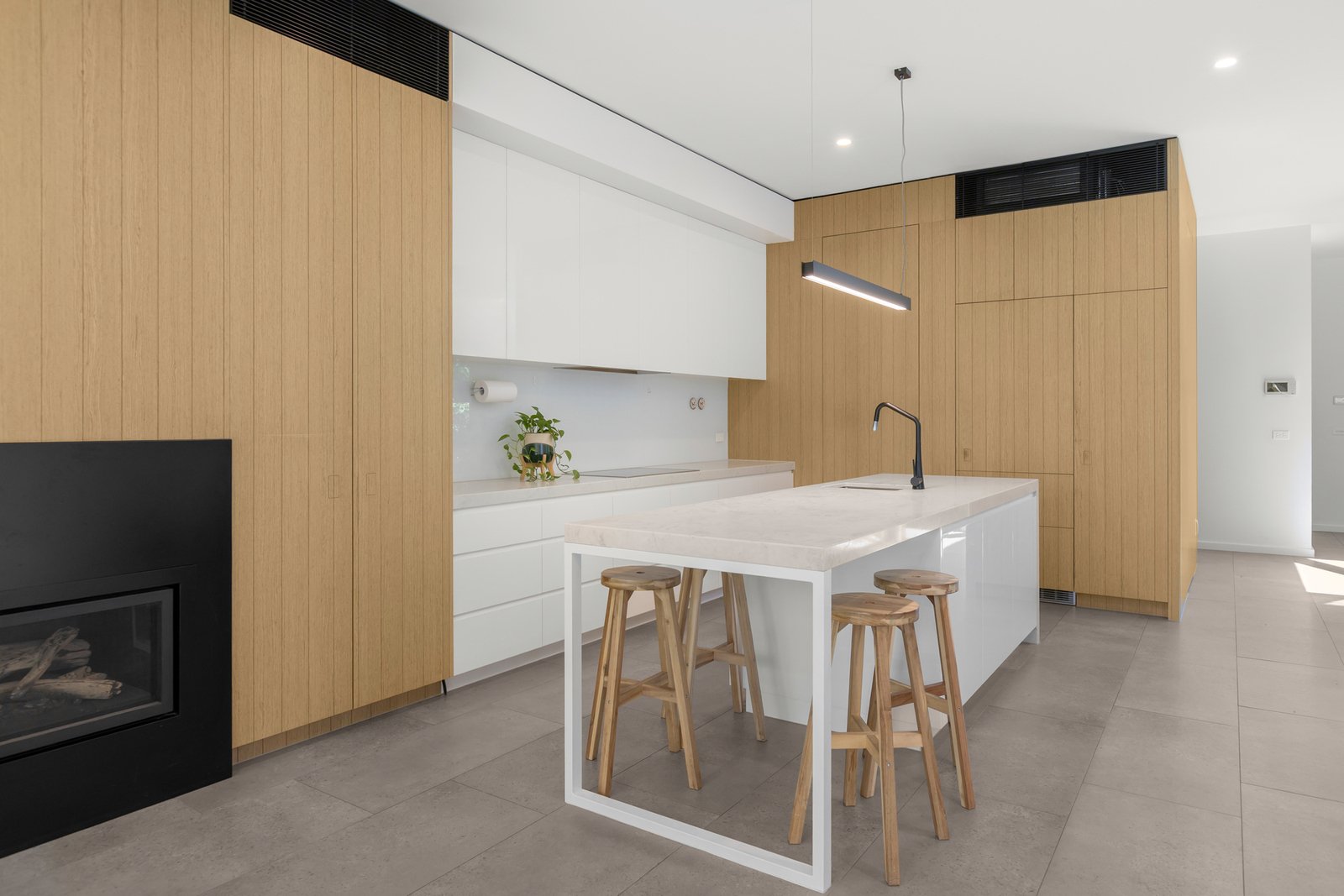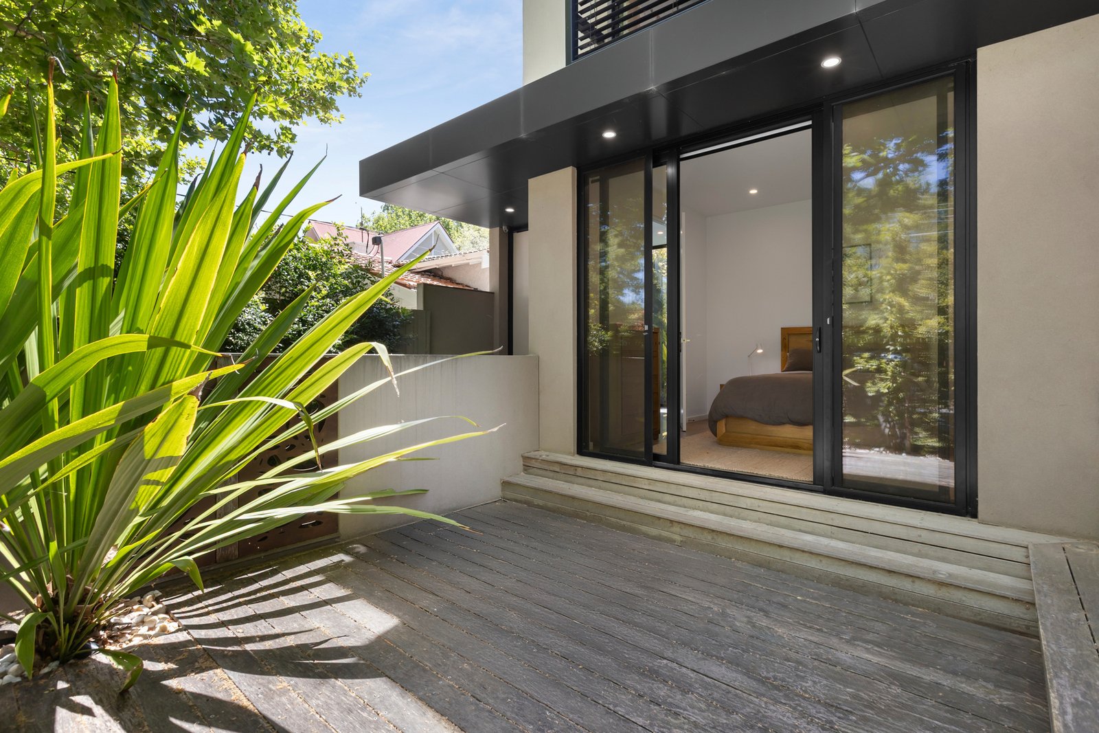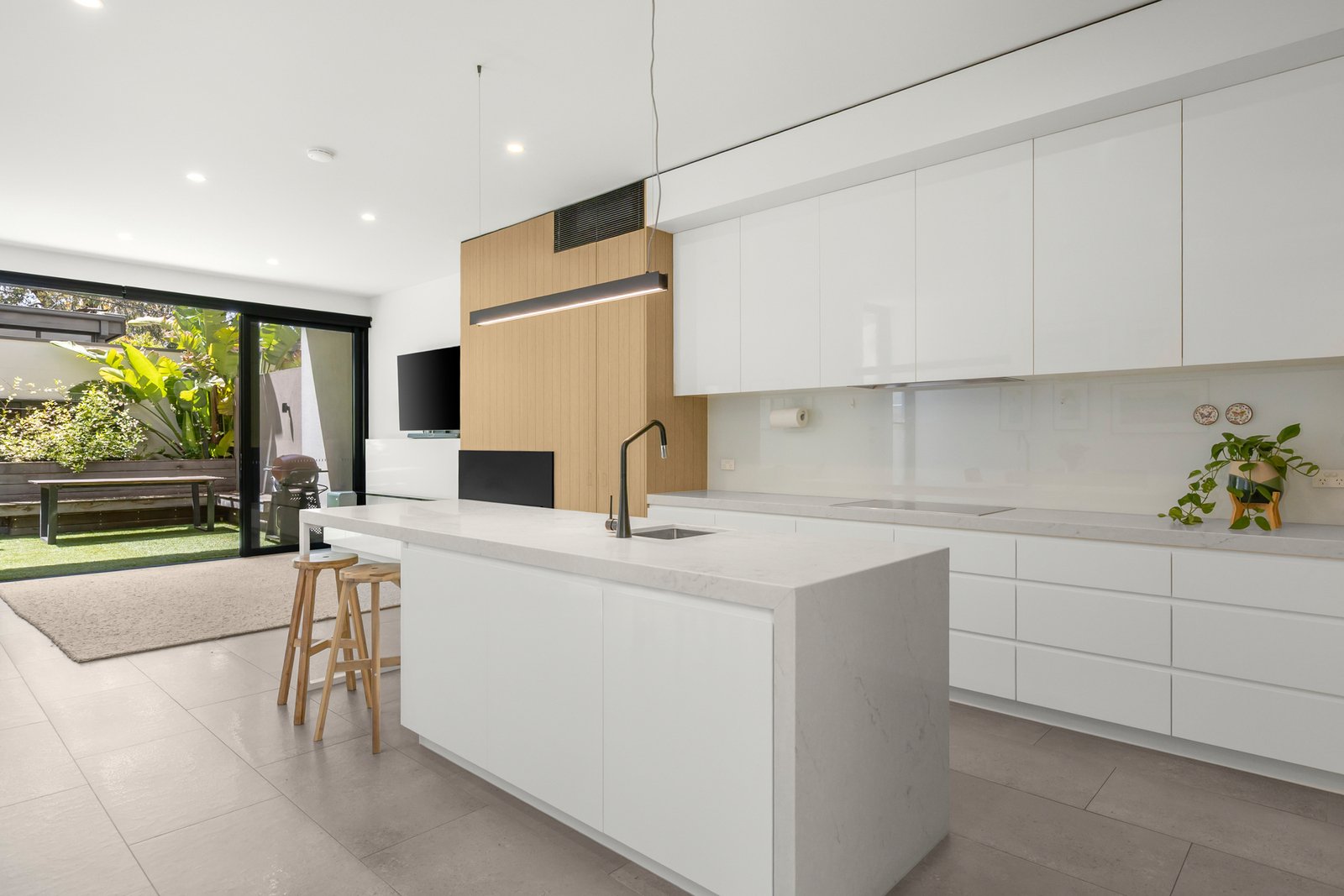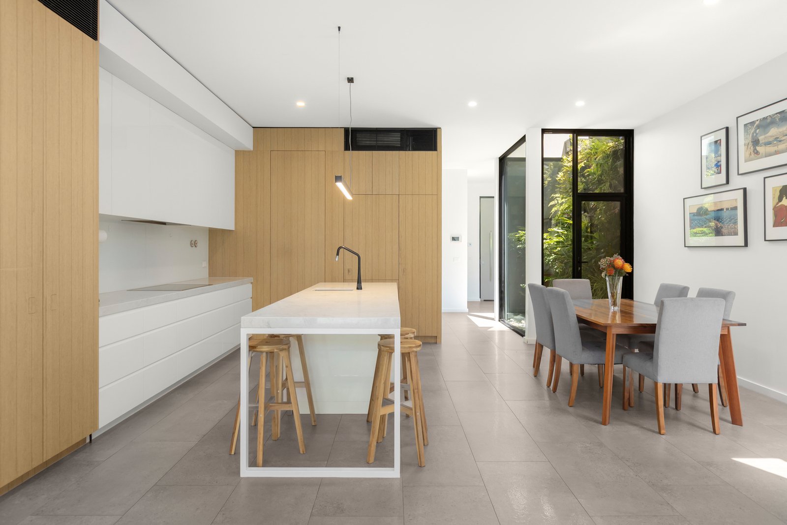 Built by renowned luxury builder GIA behind its own street frontage, this architecturally designed contemporary residence delivers uncompromising easy care living in one of Elwood’s most prized pockets. Nestled amongst the Plane Trees that line its peaceful, family focussed avenue, impressive three bedroom, three bathroom accommodation unfolds across two light-filled levels that beautifully balance space with flexibility in perfect privacy. High ceilings and large expanses of glass ensure a close connection to the lush leafy surroundings whilst refined attention to detail and premium finishes ensure a superior level of comfort throughout.