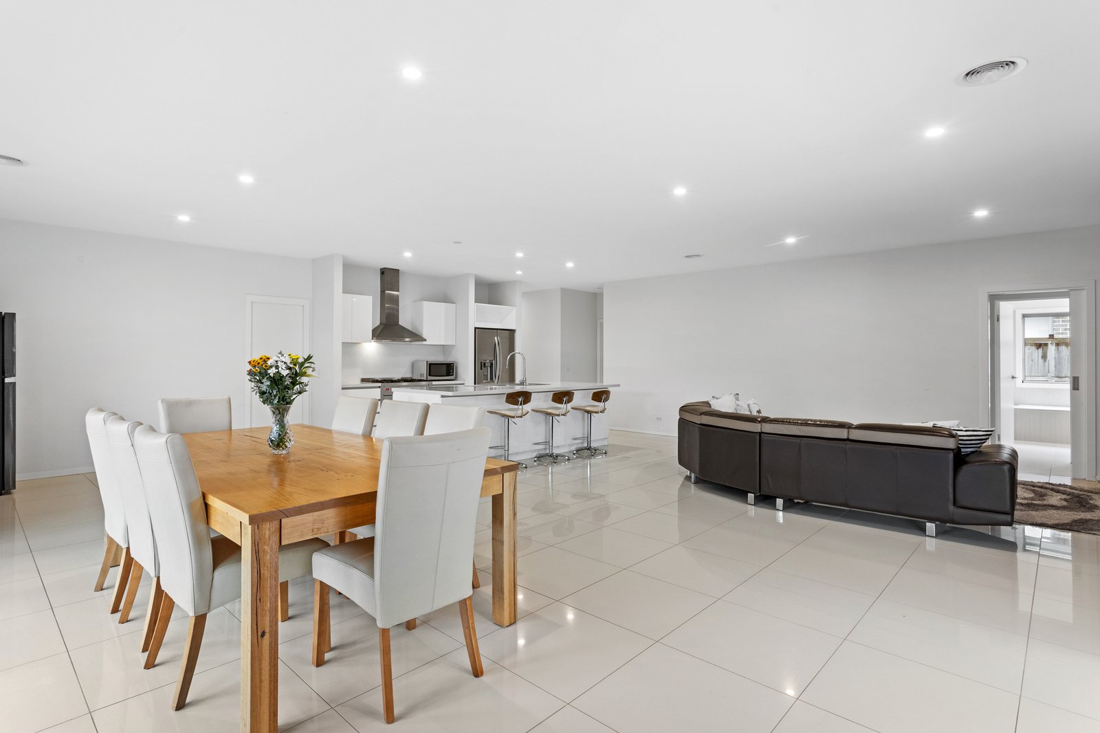 Providing ideal separation between the main suite and the family wing, the accommodation configuration blends privacy with connectivity across a four bedroom, two bathroom design, supported by dual-zoned ducted heating and cooling, a dedicated laundry, and an integrated double garage with internal access.