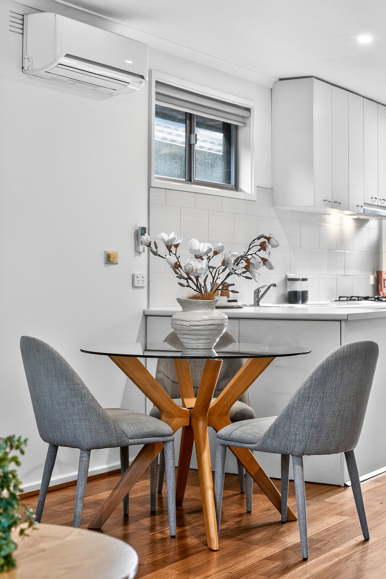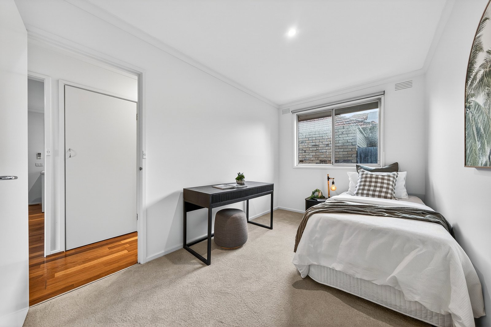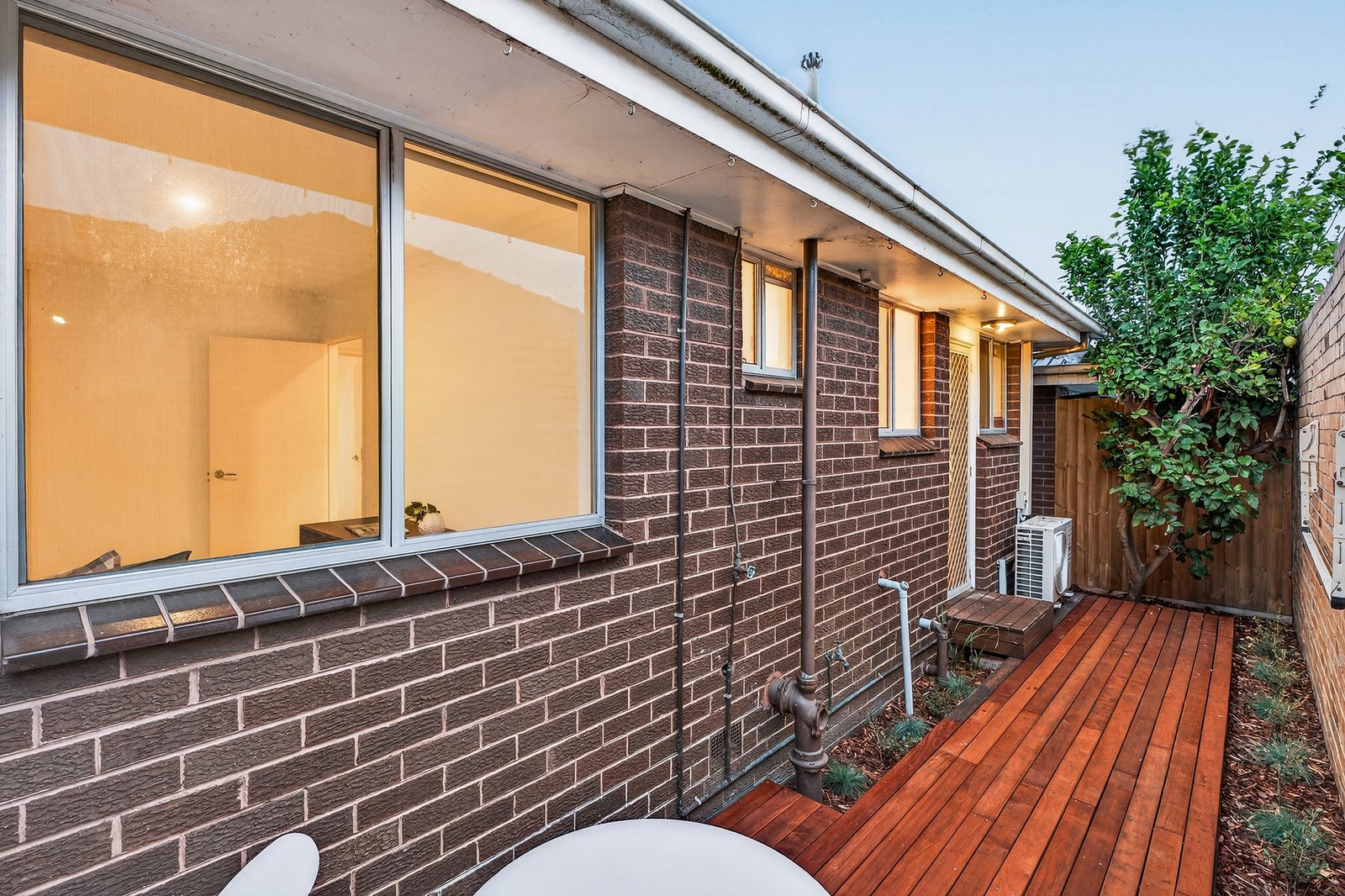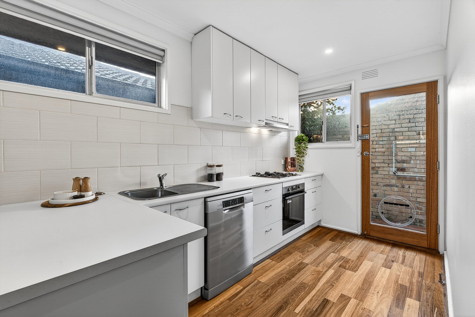 Opened up and styled out with light-filled living-dining flowing to a stylish prestige appliance kitchen (with gas cooktop and Bosch dishwasher), this high-quality home spills out seamlessly through a tall glass-door to more outdoors in a very private, very sunny, newly-decked walled-courtyard. Sized up with queen-size bedrooms alongside a glossy fully-tiled bathroom (with super-deep bath and separate shower), this well-appointed unit has a handy separate WC, ‘secret’ laundry facilities, and great storage including built-in robes and hall and linen closets.