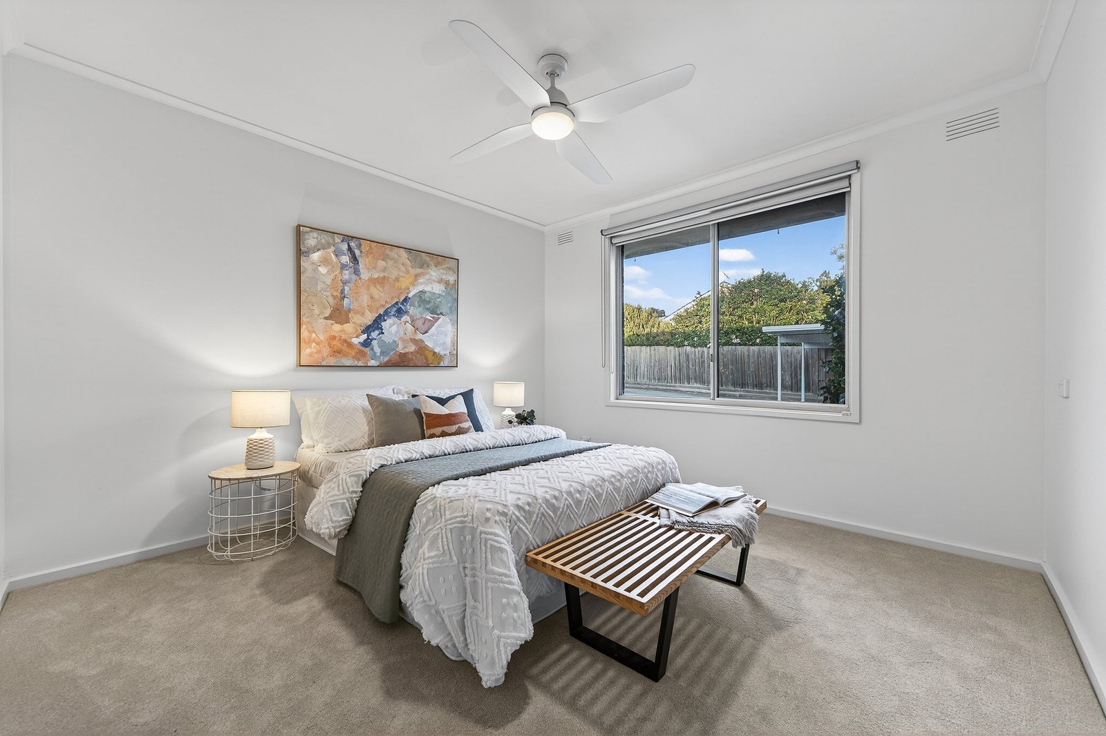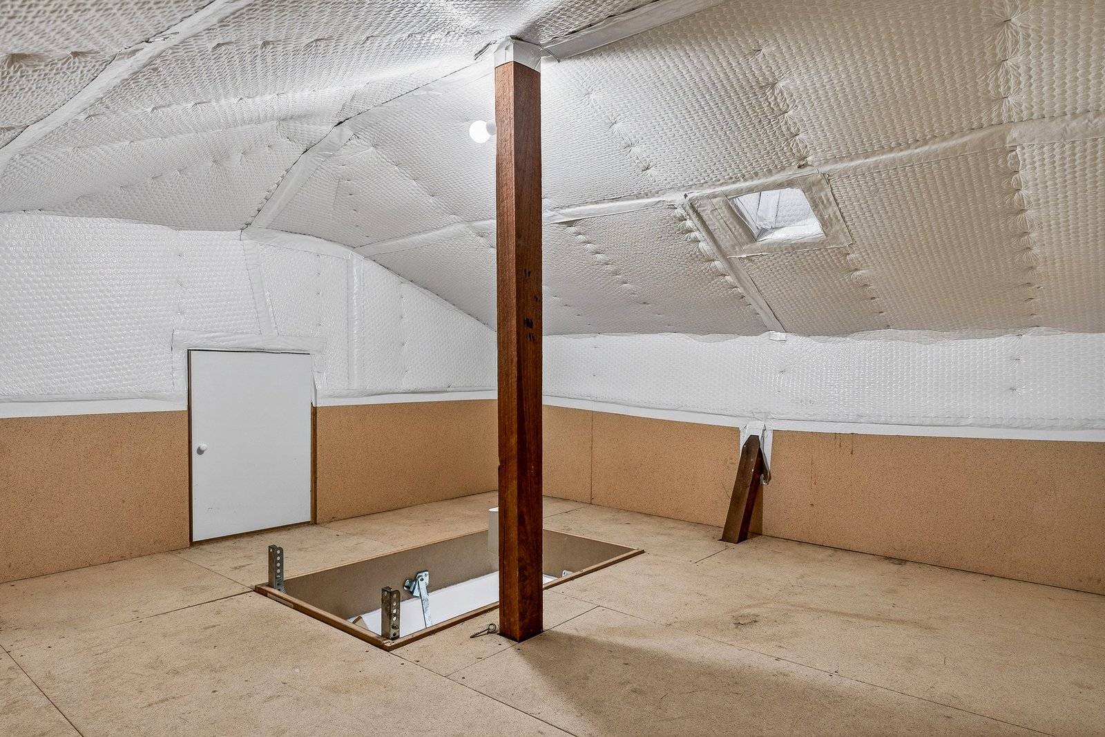 Warmly welcoming with rich flooring and plush bedroom carpets, this reverse-cycle air-conditioned home has an airy designer fan for the main bedroom ...and a bonus up-above – with almost 10sqms of high-quality, fully-lined and floored attic-storage beyond a well-engineered pull-down ladder!