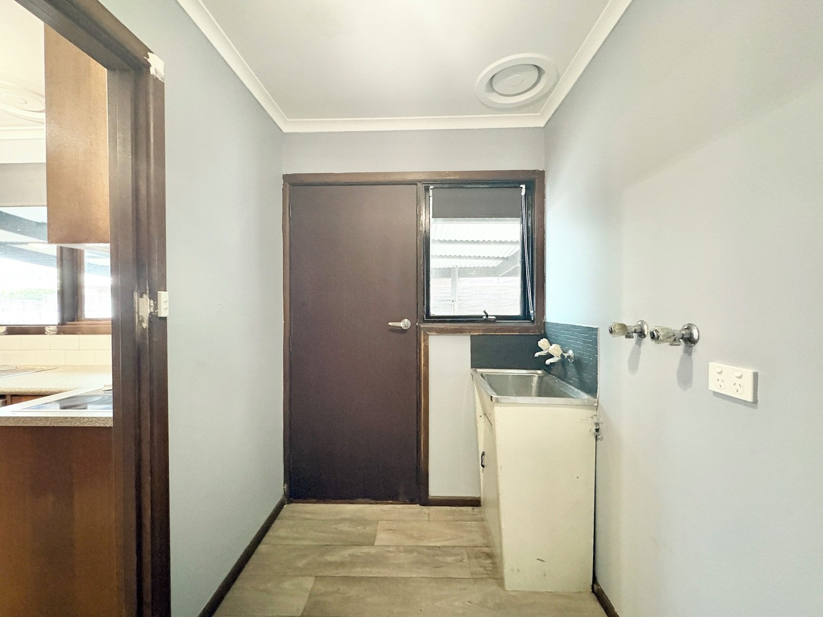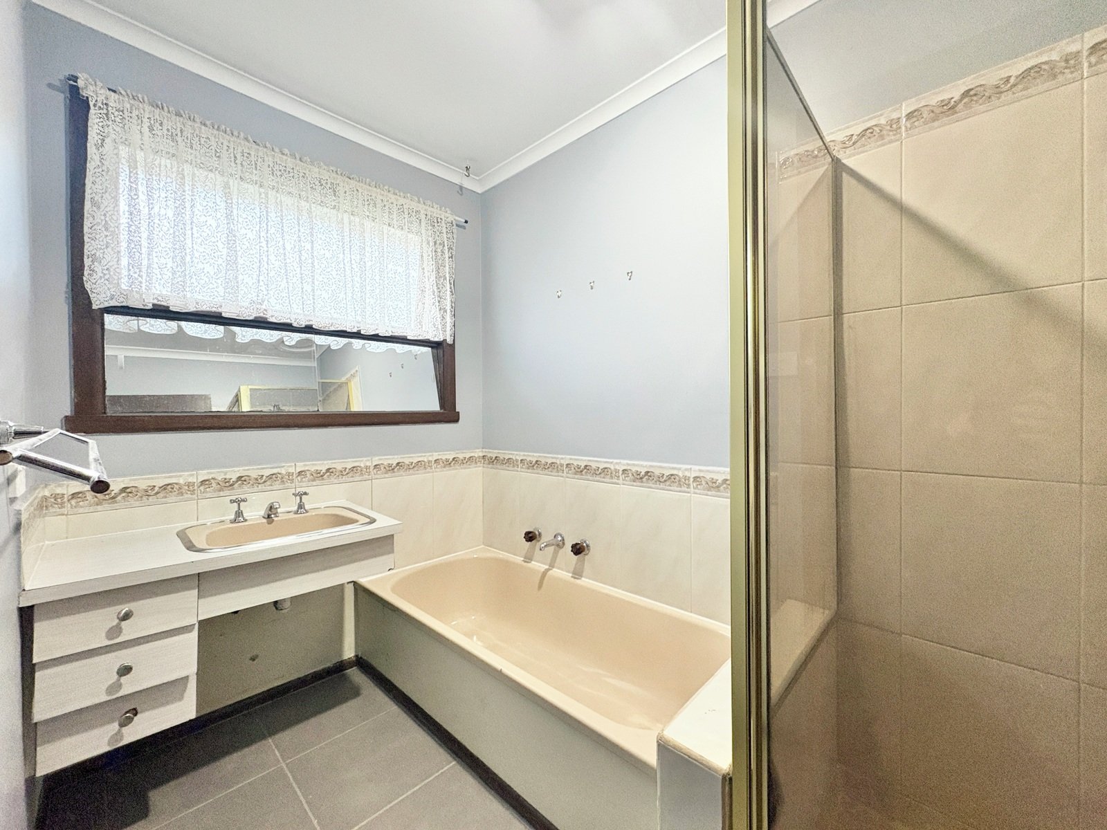 Each of the three bedrooms is generous in size and fitted with ceiling fans for year-round comfort, while the master features built-in robes and easy access to the central bathroom. The home is further enhanced by a split-system with heating and cooling, ensuring comfort in all seasons.